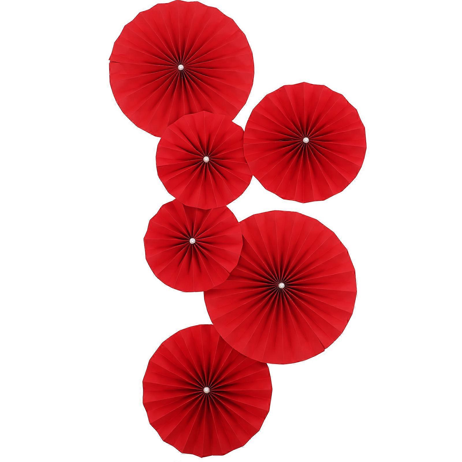 Round Paper Fans Hanging Decor for Party Layout Props 12Pcs Red Paper Fans