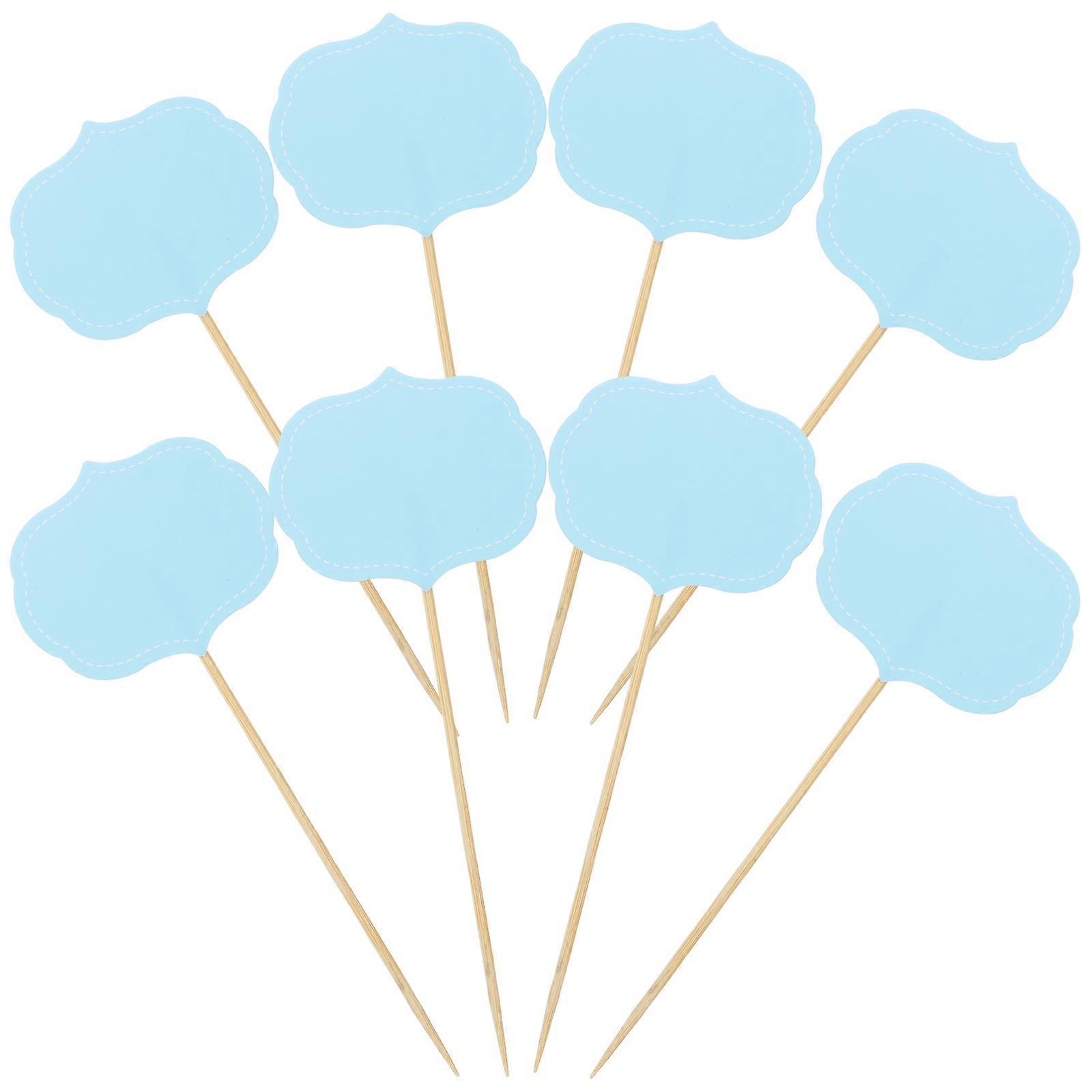 This Cheese Marker, it can be used for cake, cupcake, dessert, cheese, etc. Designed with simple shape, simple and lightweight, compact size for easy to carry and use. Safe and smooth material, no need to worry about it will affect the taste of your food. Features - Color: Sky-blue - Material: Paper, Wood - Size: 15.00X6.00X0.10cm/5.89X2.36X0.04in - Unique and simple appearance, lightweight, this food label can be reused. Suitable for many occasions. - The Cheese Label Sign, unique and decorative, easy for writing, chalkboard shape, writable, easy to distinguish. - Paper and wooden material, this food label is natural, safe and stable to use, can be used with confidence. - Easy to install, just plug this food label directly into the cake, bring much convenience to daily life. - This food labels set can be wonderful and good gift choice for your friends, they will like it very much. Package list: x Blank Toothpick Tags