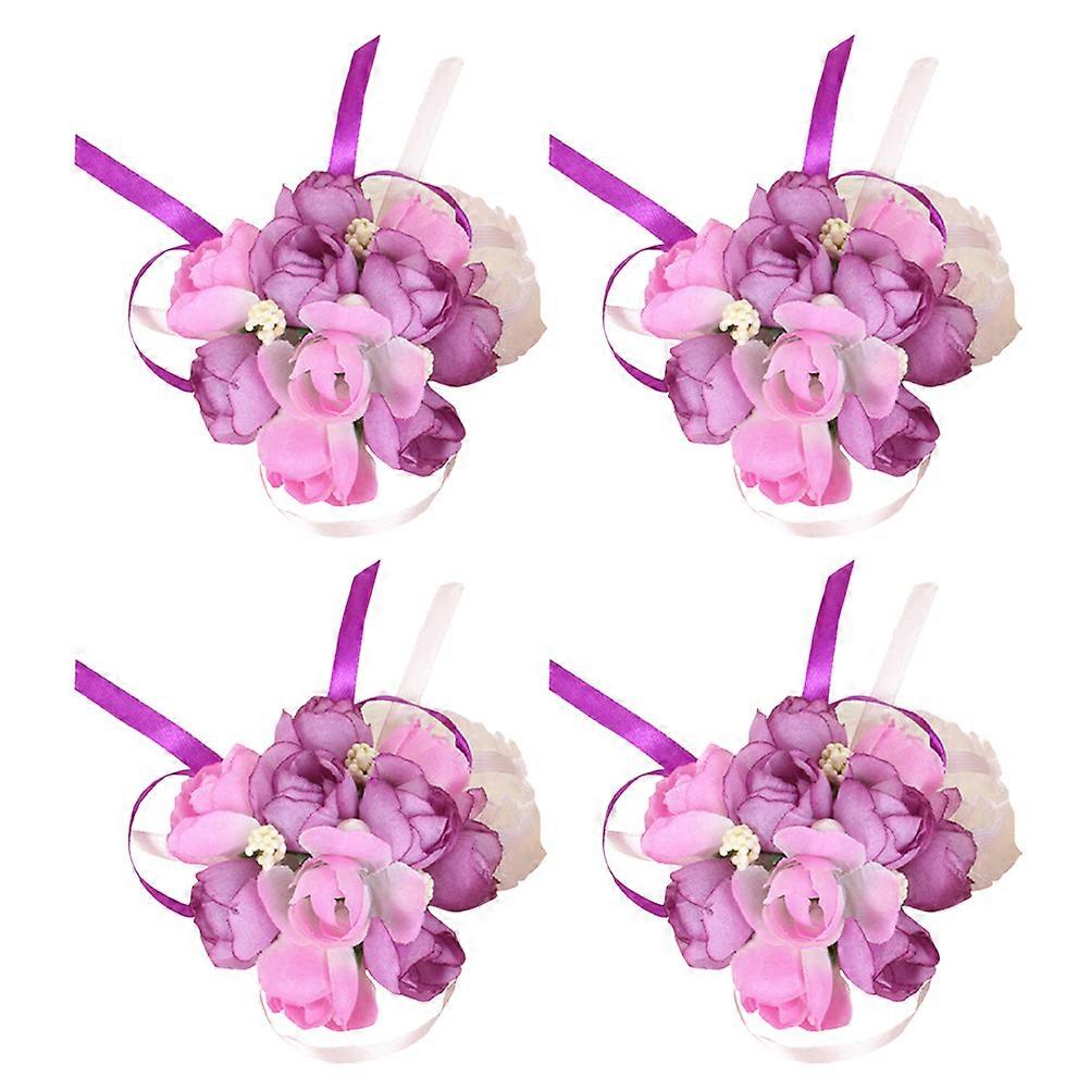 Wedding Brooch Flower Wrist Flower for Wedding 4Pcs Purple Floral Decoration