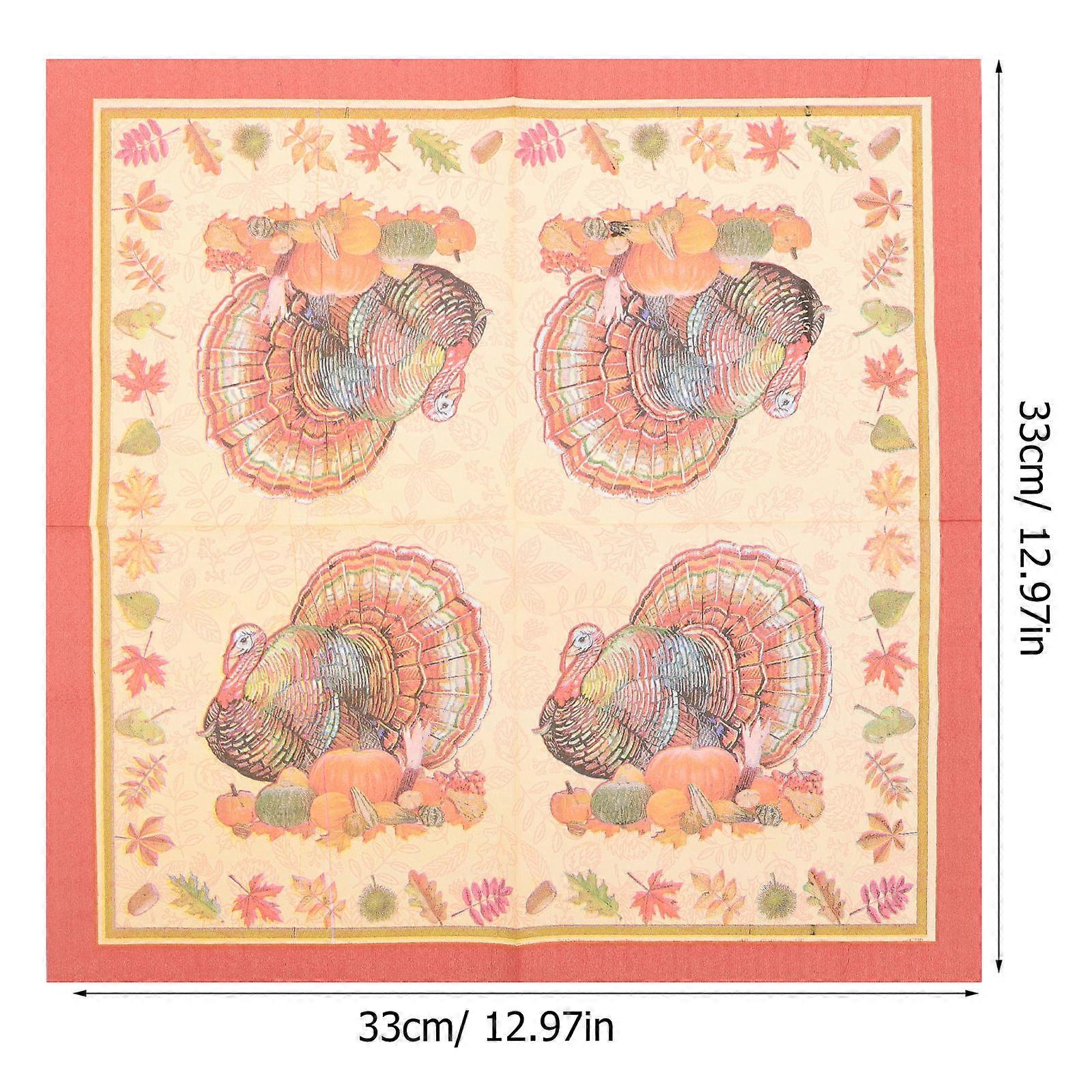 Thanksgiving Napkins Cartoon Turkey Printed Napkins for Party Use 40Pcs