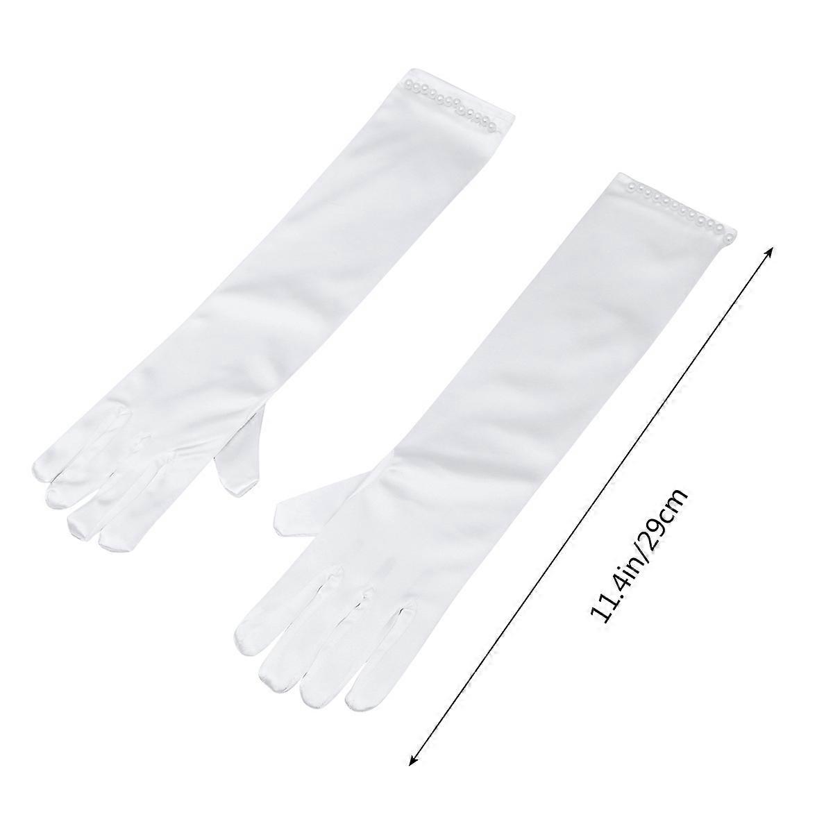 These gloves are made with top-class material for durable and comfortable wearing. They are fit for stage performance, banquet occasions, or other formal events. Your little will love these magical gloves! Available in a variety of colors, you can choose the color you want. Features - Color: White. - Material: Satin. - Size : Approx. 29 x 7.6 x 0.1cm. - Designed with full finger style with pearl decor ornament. - Fashionable and comfortable. Easy to match the dress of all sorts of color, let girls become the most elegant and beautiful flower girl. - Perfect for Wedding, Church, Baptism, Easter costume, Halloween costume, Pageant, Evening Party, Prom, Ball, Opera and others which makes your sweet and charming. - Warm Tip: Dear buyer, Due to lighting effect, monitor's brightness, manual measurement and etc, there could be some slight differences in the color and size between the photo and the actual item. Sincerely hope that you can understand! Thank you! Package list: 1 x pair of gloves
