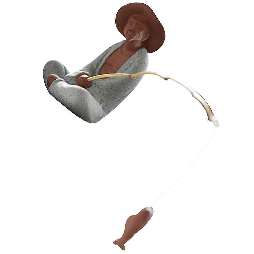 Miniature Fisherman Figurine Ceramic Fish Tank Decor 1Set for Aquarium