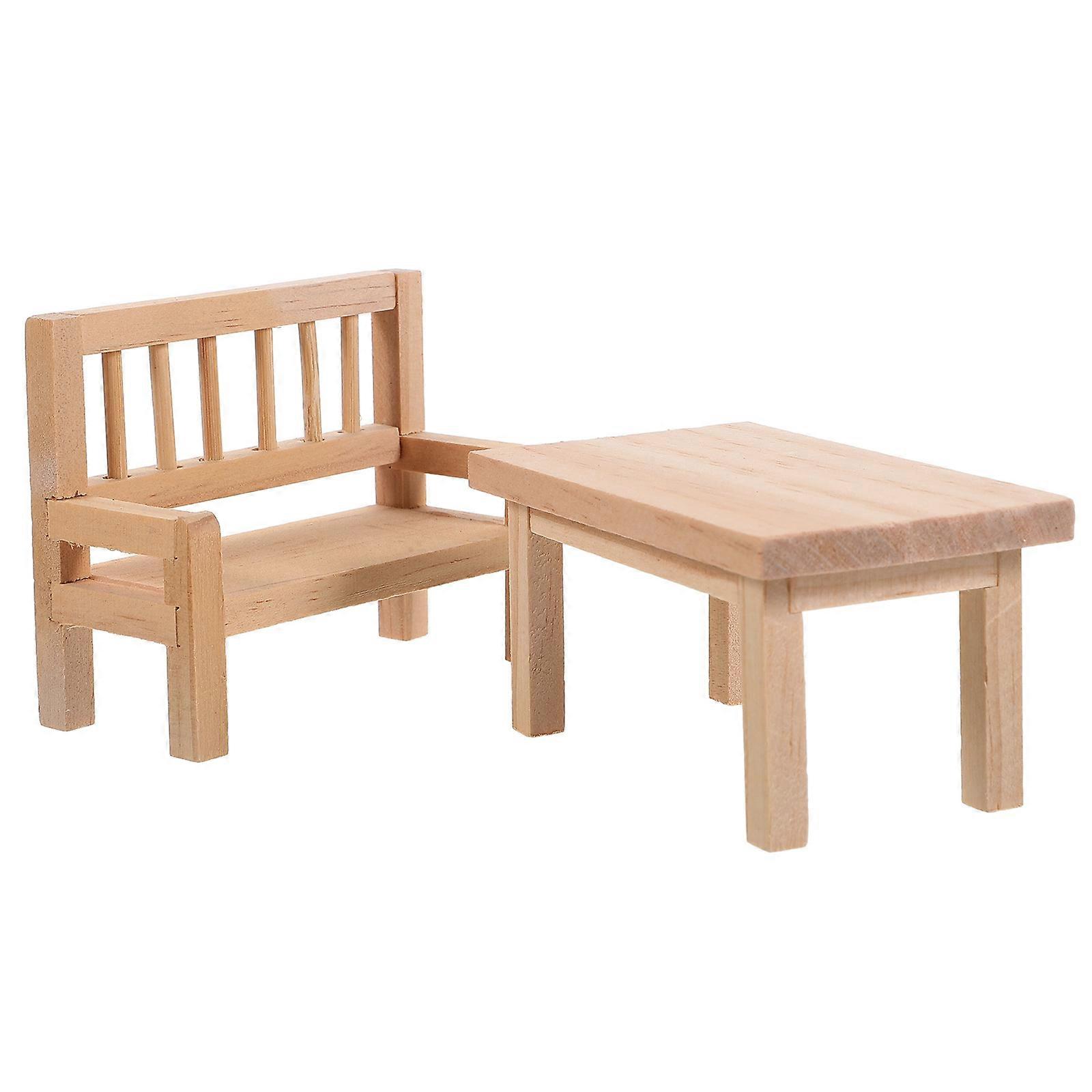 Wooden Miniature Furniture Doll House Table and Chair Set for 1Set