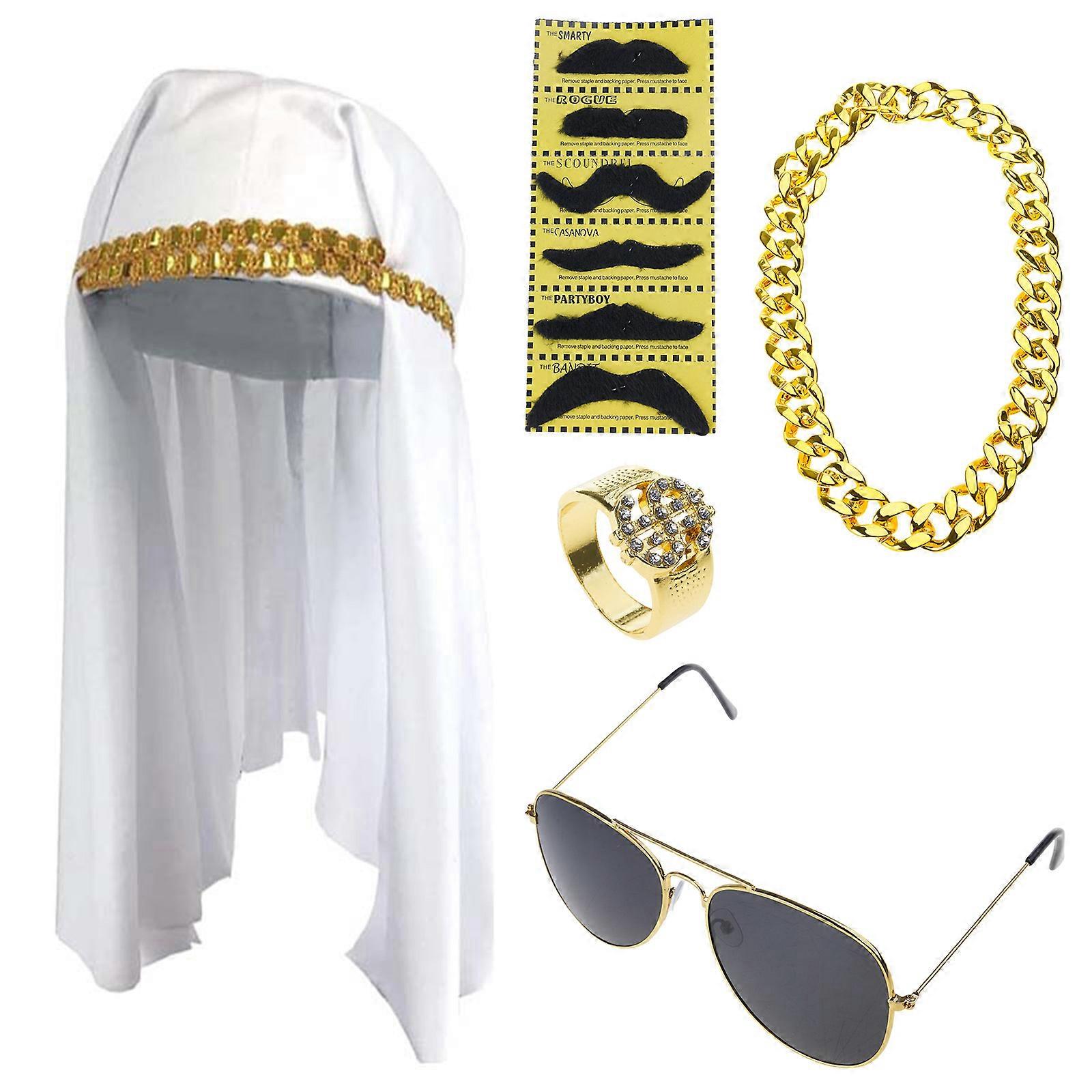 1 Set Men's Arabian Costume Set Scarf False Beard Sunglasses Rings Necklace Muslims Costume Set for Fancy Dress Multicolor