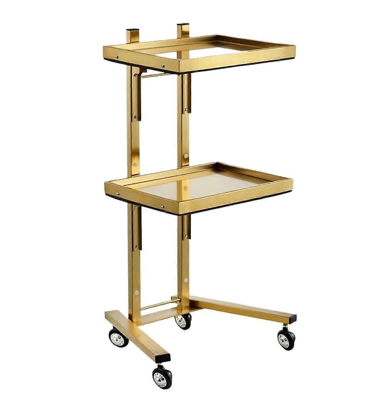 Rolling Utility Cart Gold 2Tier Foldable Stainless Steel Salon Trolley with Durable Brake Wheels