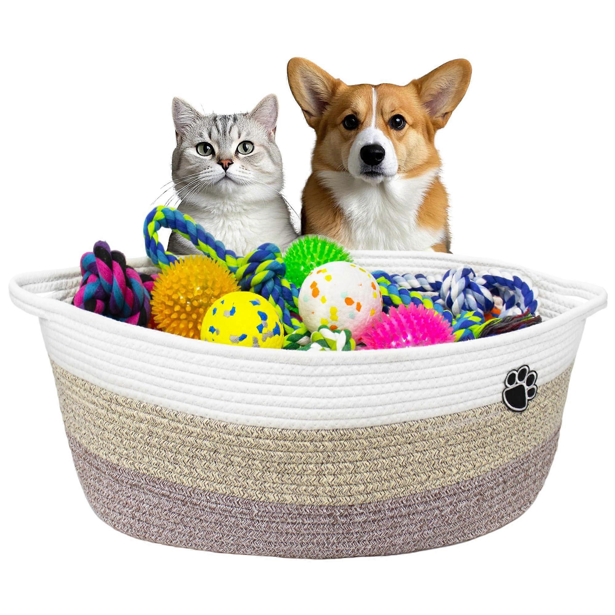 Large Dog Toy Storage Basket, 30L Foldable Cotton Rope Organizer with Handles for Pets and Laundry