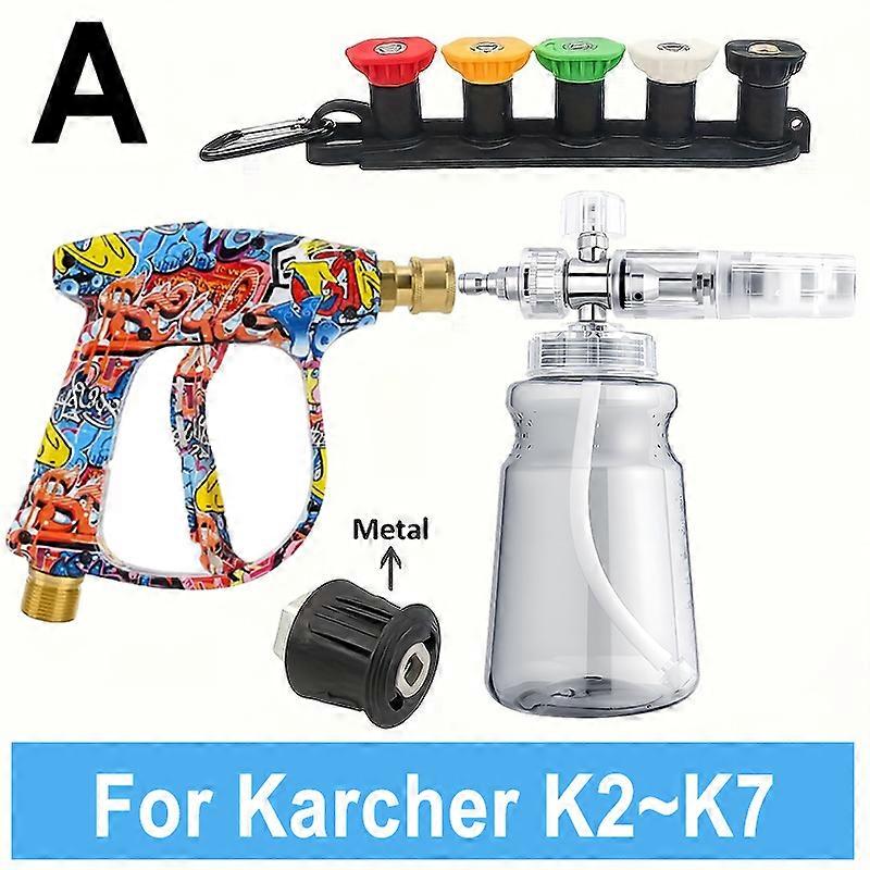 Colored Water Gun Alloy Plated High Pressure Foam Cannon M22-14/15 Adapter 5 Color Nozzles 1/4" Quick Connect for Lavor Karcher
