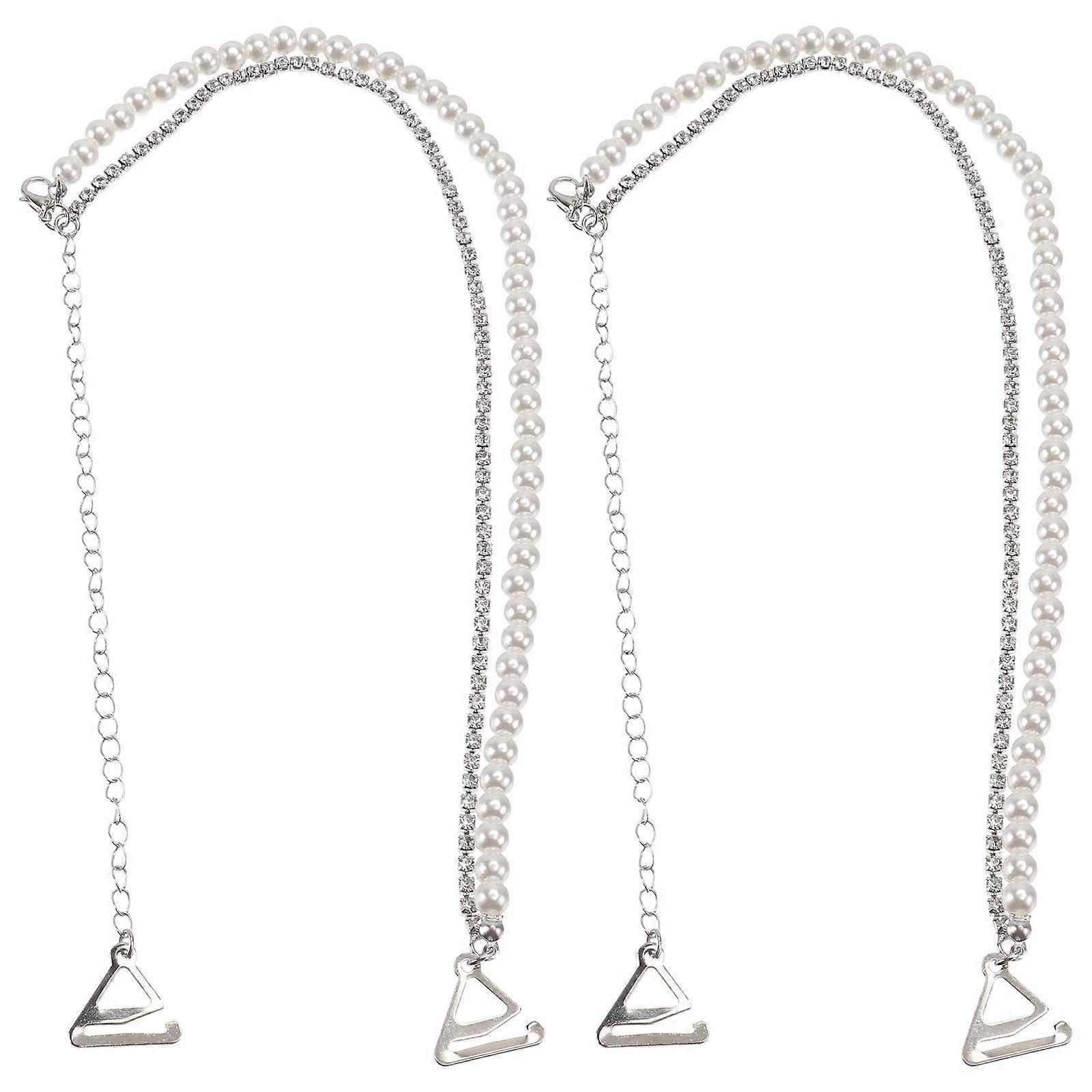 Pearl Rhinestone Bra Shoulder Straps for Women Use 2Pcs Practical Underwear Straps