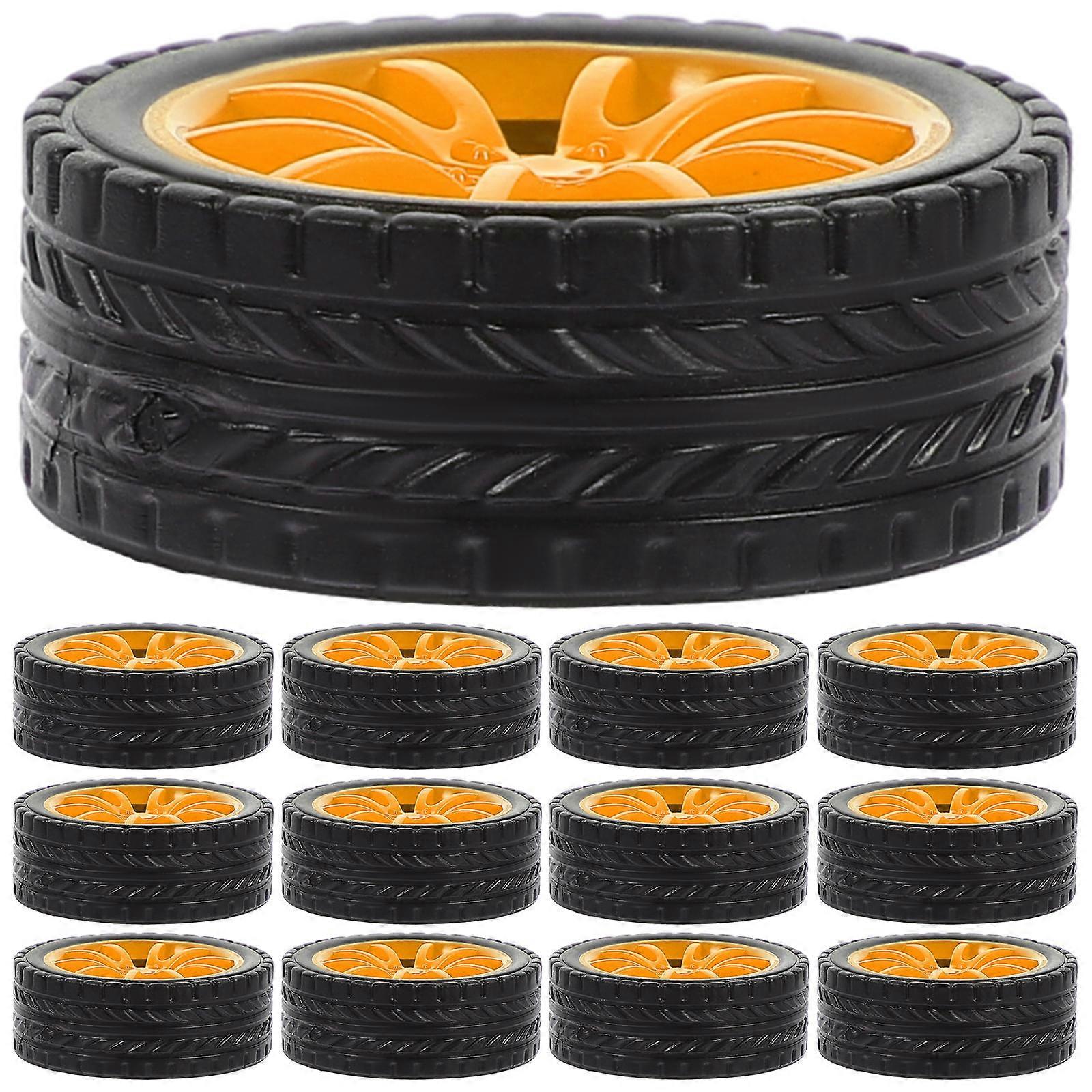 DIY Car Wheels for Kids Playthings 20Pcs Yellow Rubber Toy Wheels