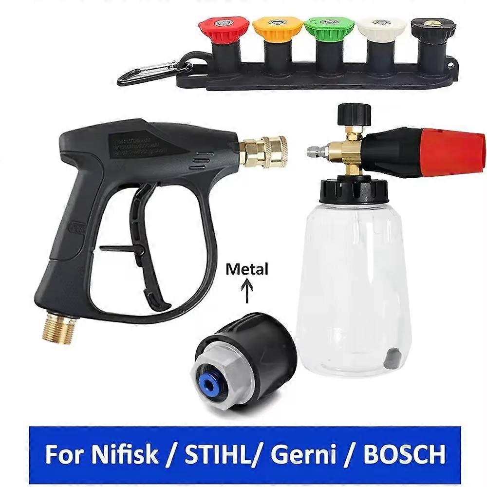 High Pressure Washer Gun & Foam Cannon Kit - 1/4" Quick Connect with M22-14 Adapter for Karcher K/Nilfisk/Bosch Washer