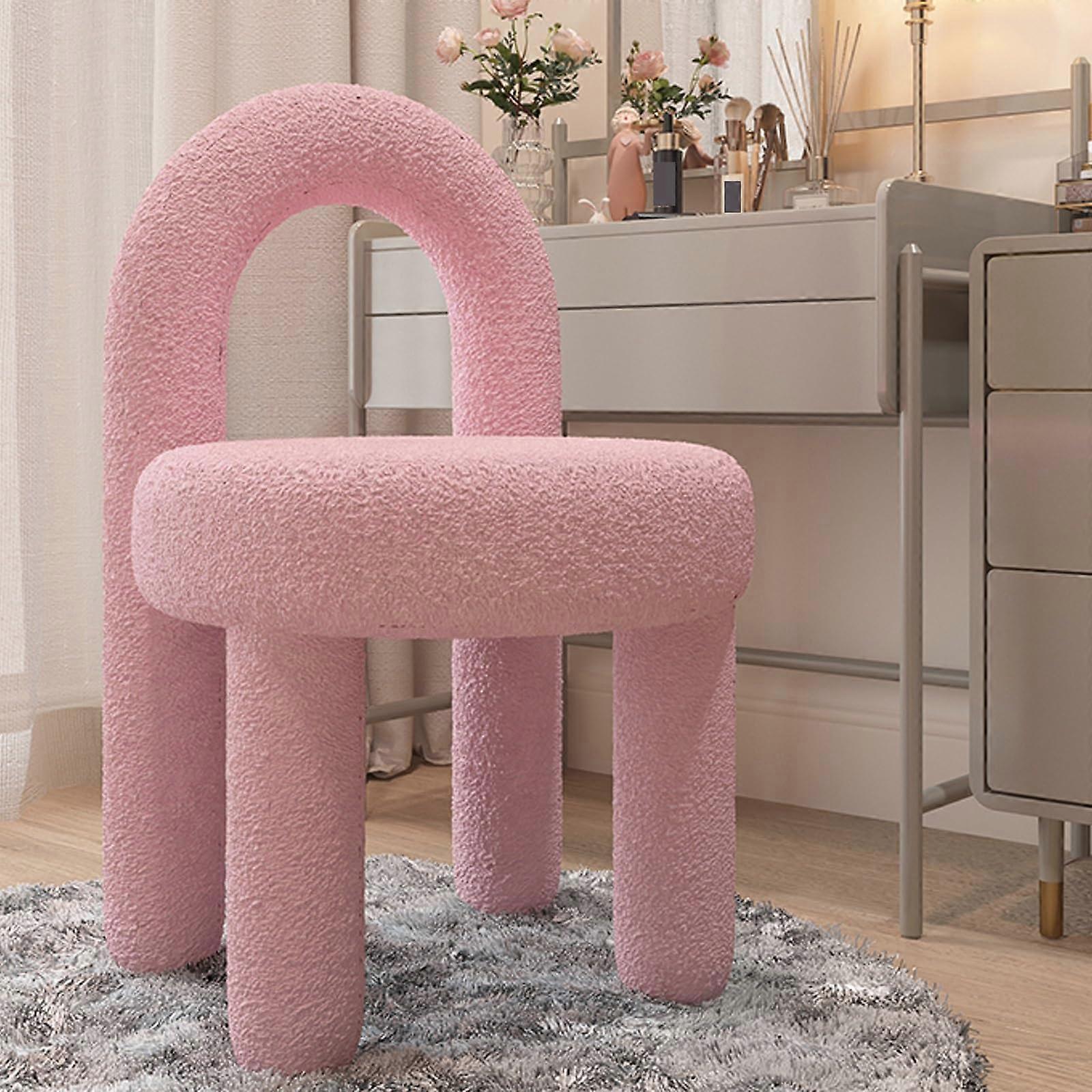 Modern Pink Vanity Chair with Lambsfaux wool Cushion and Metal Frame for Dressing Room, 6 Colors