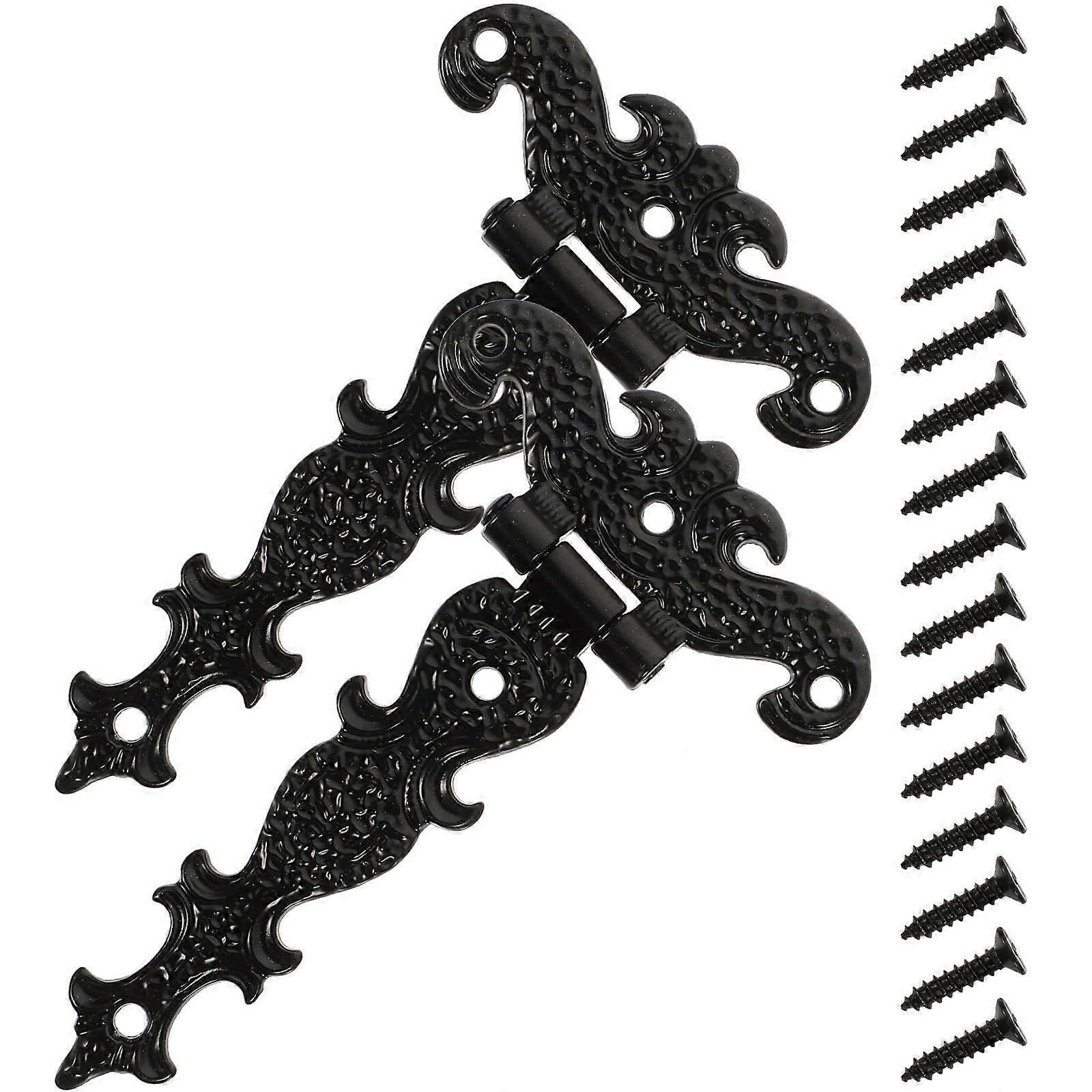 2Pcs Heavy Duty Gate Hinges Weather Resistant Vintage Decorative Style for Wooden Fence Shed Door Black and Antique Bronze Finish