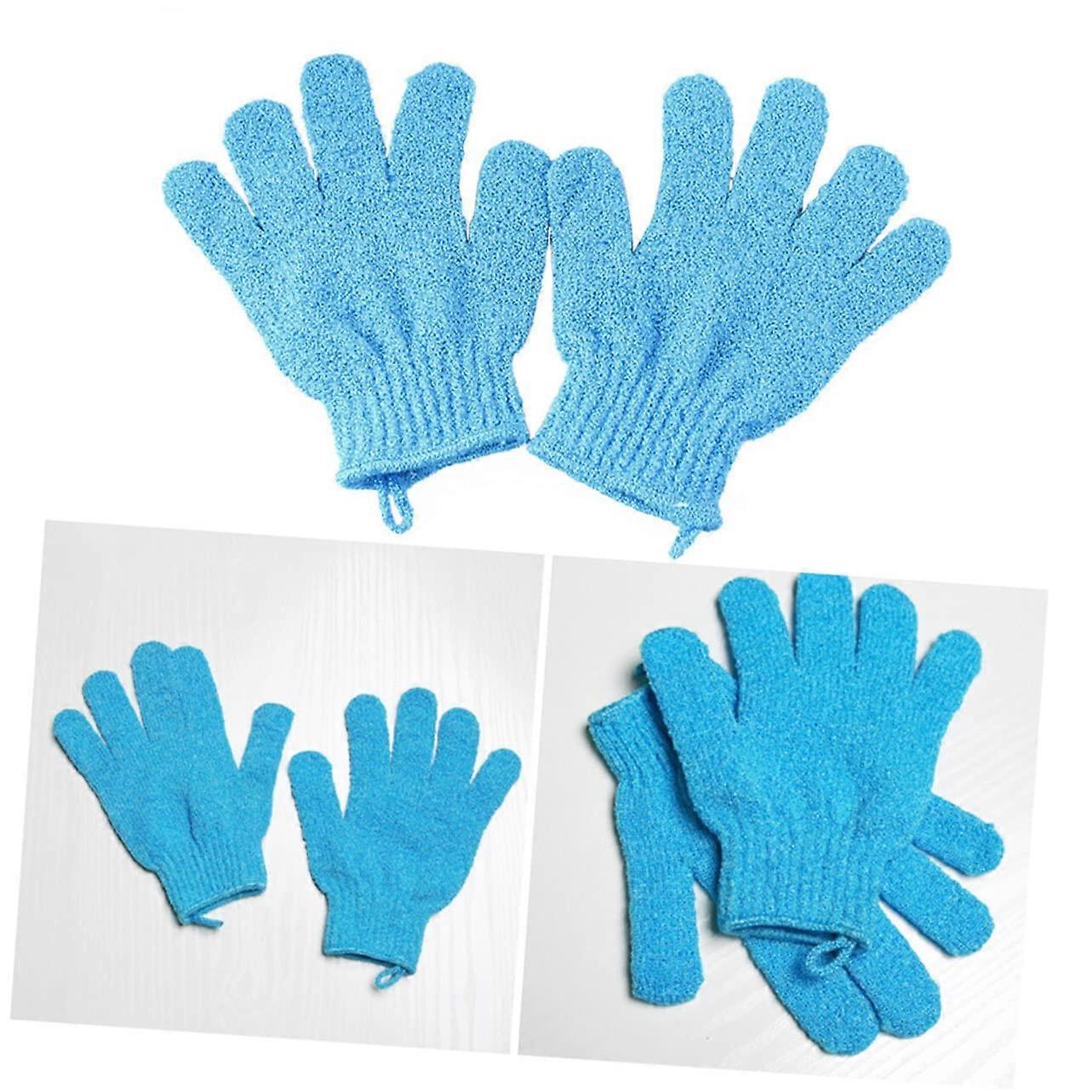 Exfoliating Bath Gloves Double Sided Nylon Body Scrub Mitts for Men and Women Blue
