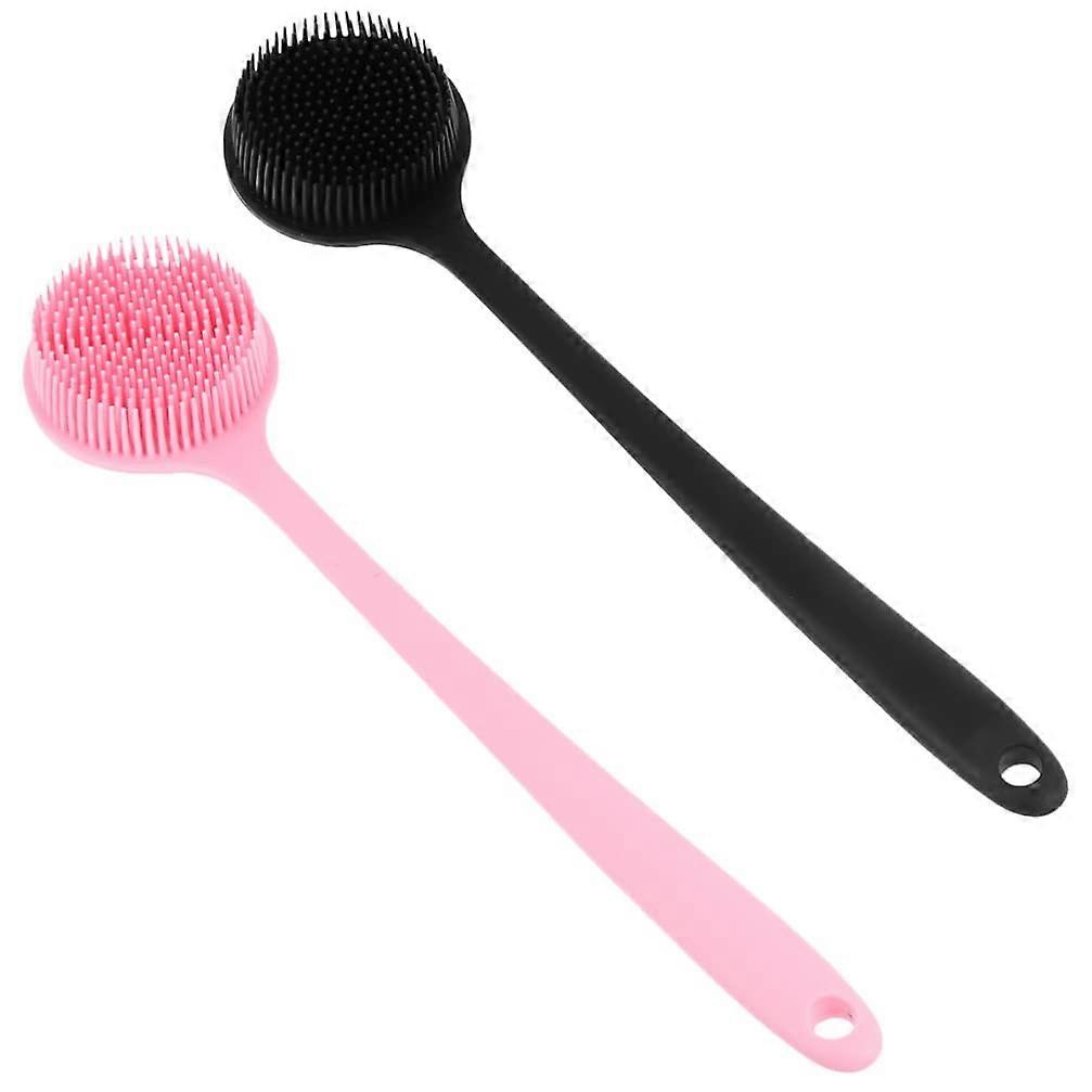2pcs Long Handle Silicone Back Scrubber Bath Brush for Gentle Exfoliation and Daily Shower Use