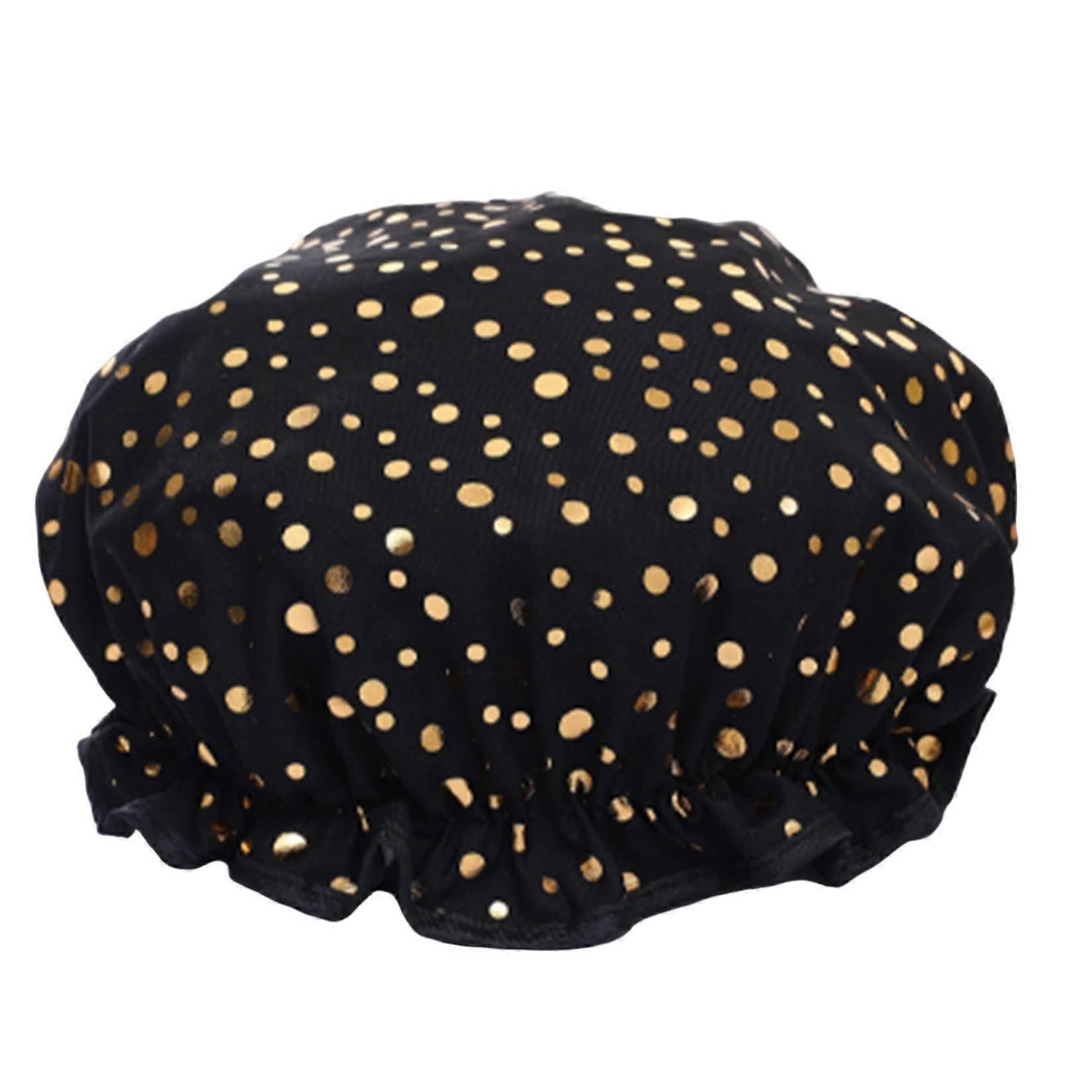 Waterproof Double Layer Shower Cap for Women with Elastic Band, Reusable Printed Design for Bath Spa