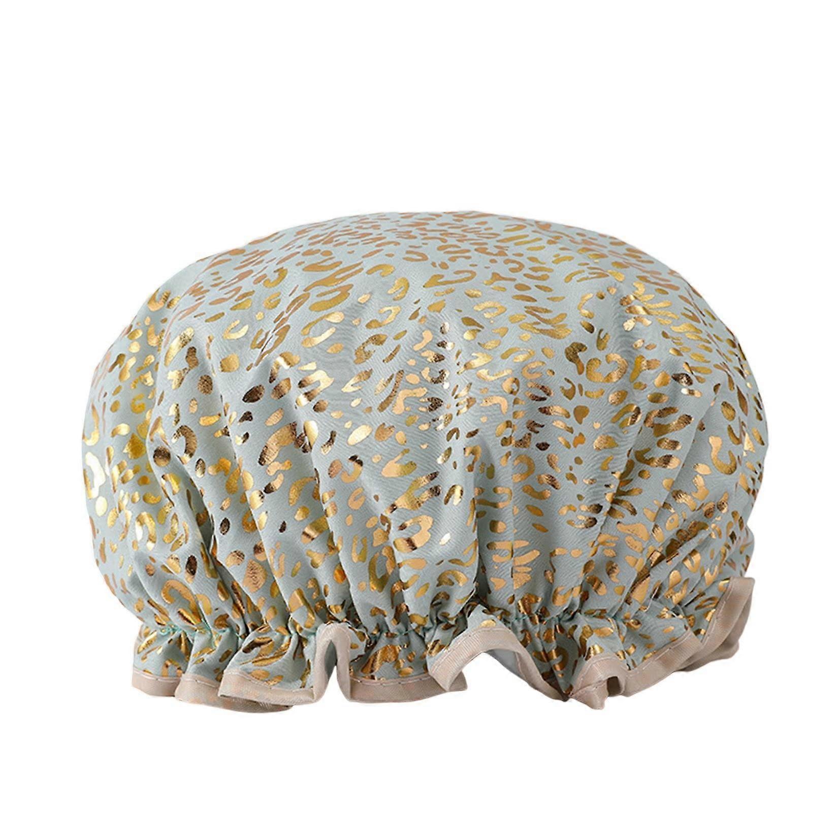 Waterproof Double Layer Shower Cap for Women with Comfort Fit Elastic Band, Reusable Printed Spa Bathing Hat