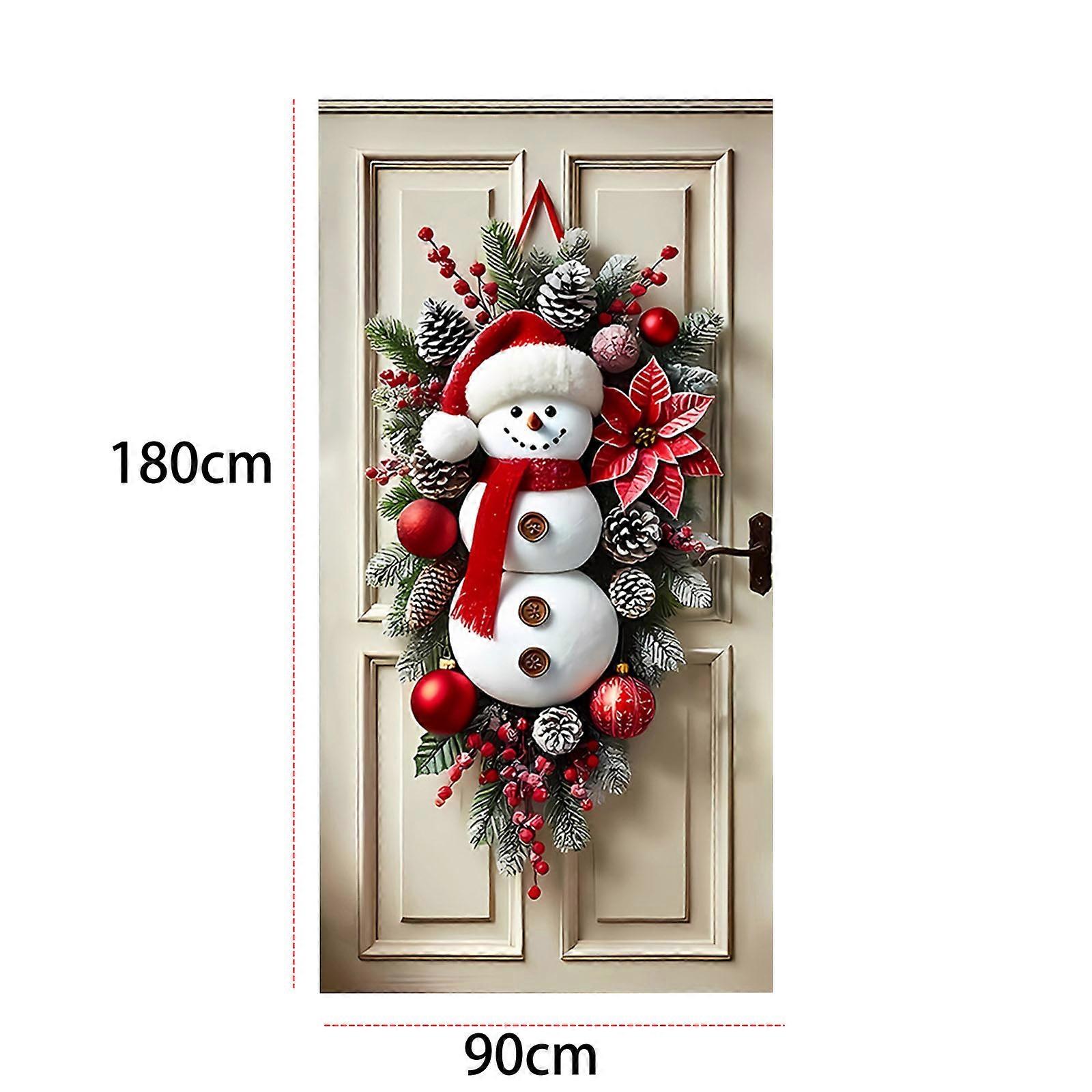 Christmas Snowman Wreath with Scarf Snowman Christmas Door Cover Snowman Wreath Wall Hanging for Holiday Home Decor