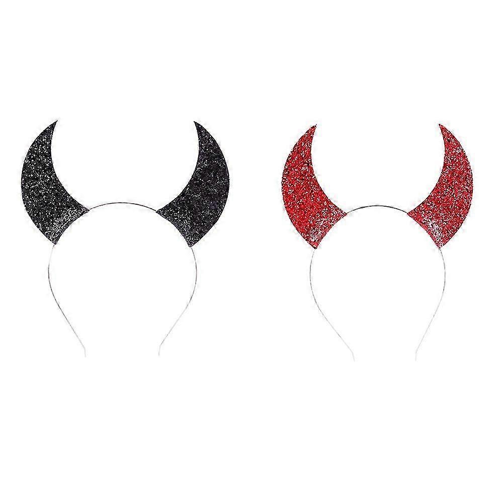 2pcs Fabulous Halloween Devil Horns Headband Paillette Hair Band Supplies for Kids Cosplay Costume P