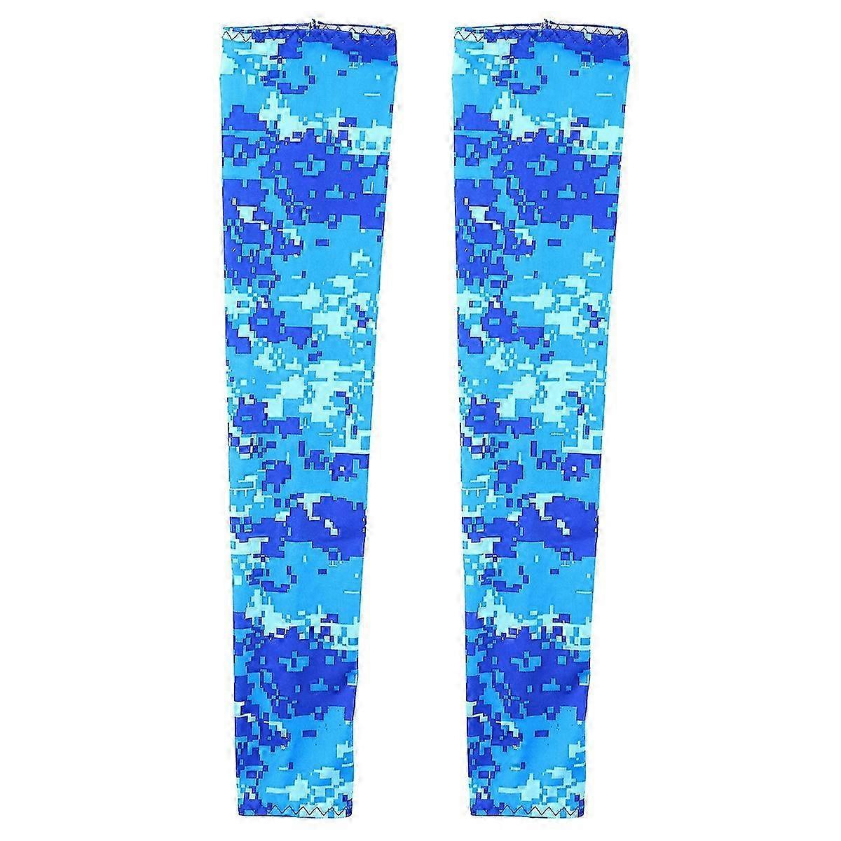 2Pcs Blue Stretchy and Cool Fingerless Gloves Style Arm Sleeve for Outdoor Activity