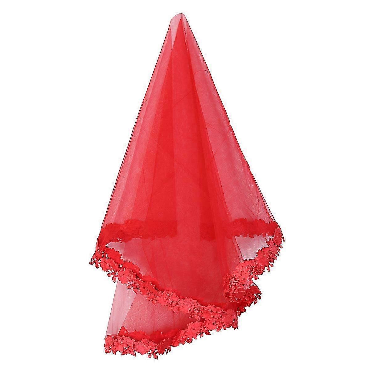 Red 1.5M Transparent Mesh Bridal Veil for Wedding Hairstyle