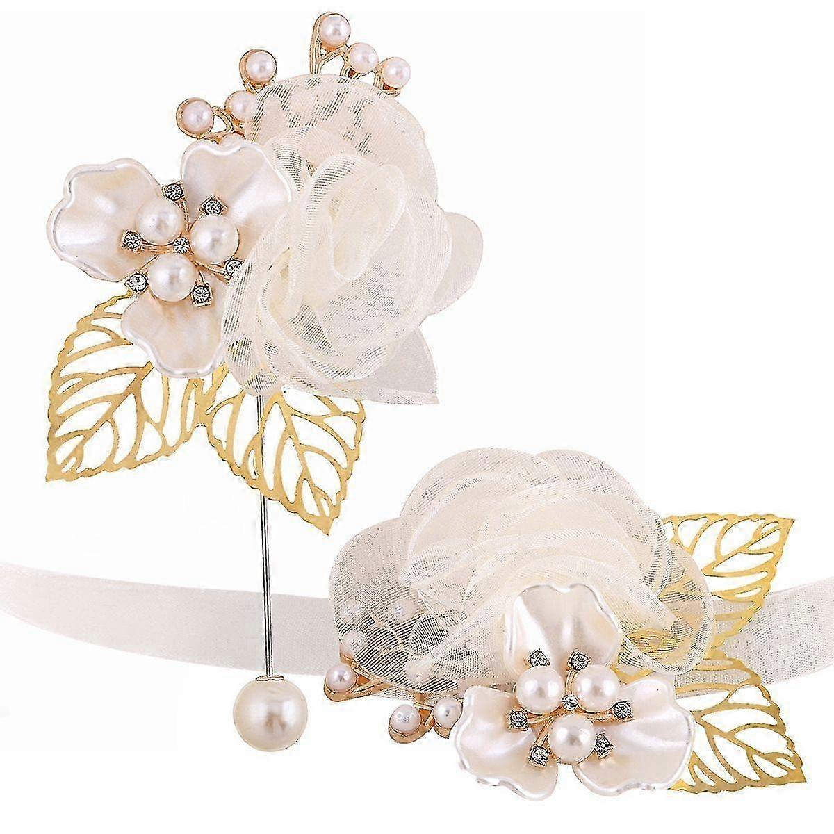 2pcs Beautiful Rose Wrist Corsage Wristlet Band Bracelet Boutonniere Perfect for Bride Wedding Wrist