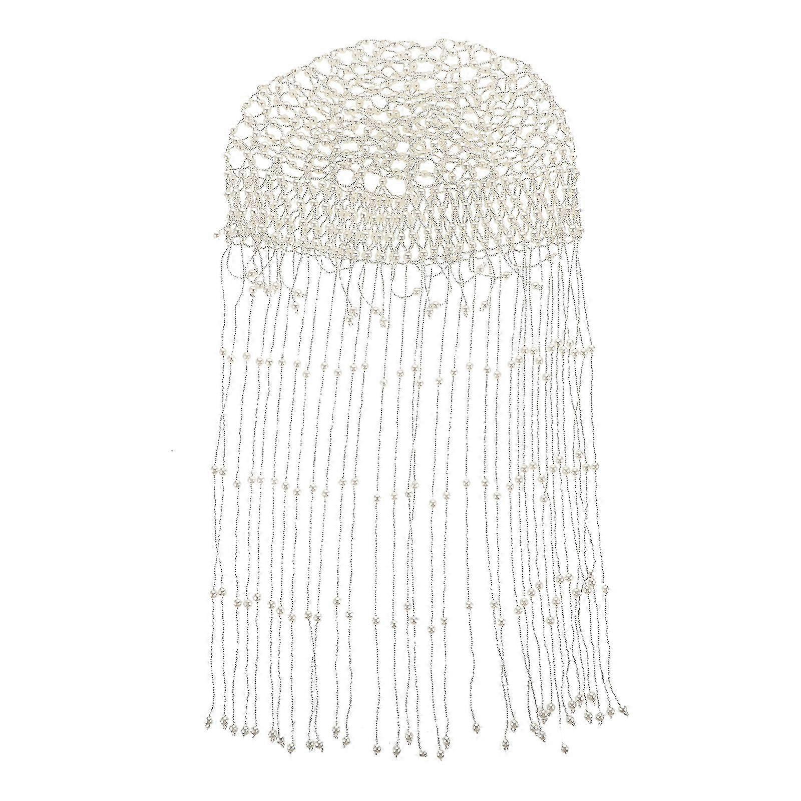 Wedding Bride Elegant Pearl Tassel Belly Dance Headpiece Hat and Chain