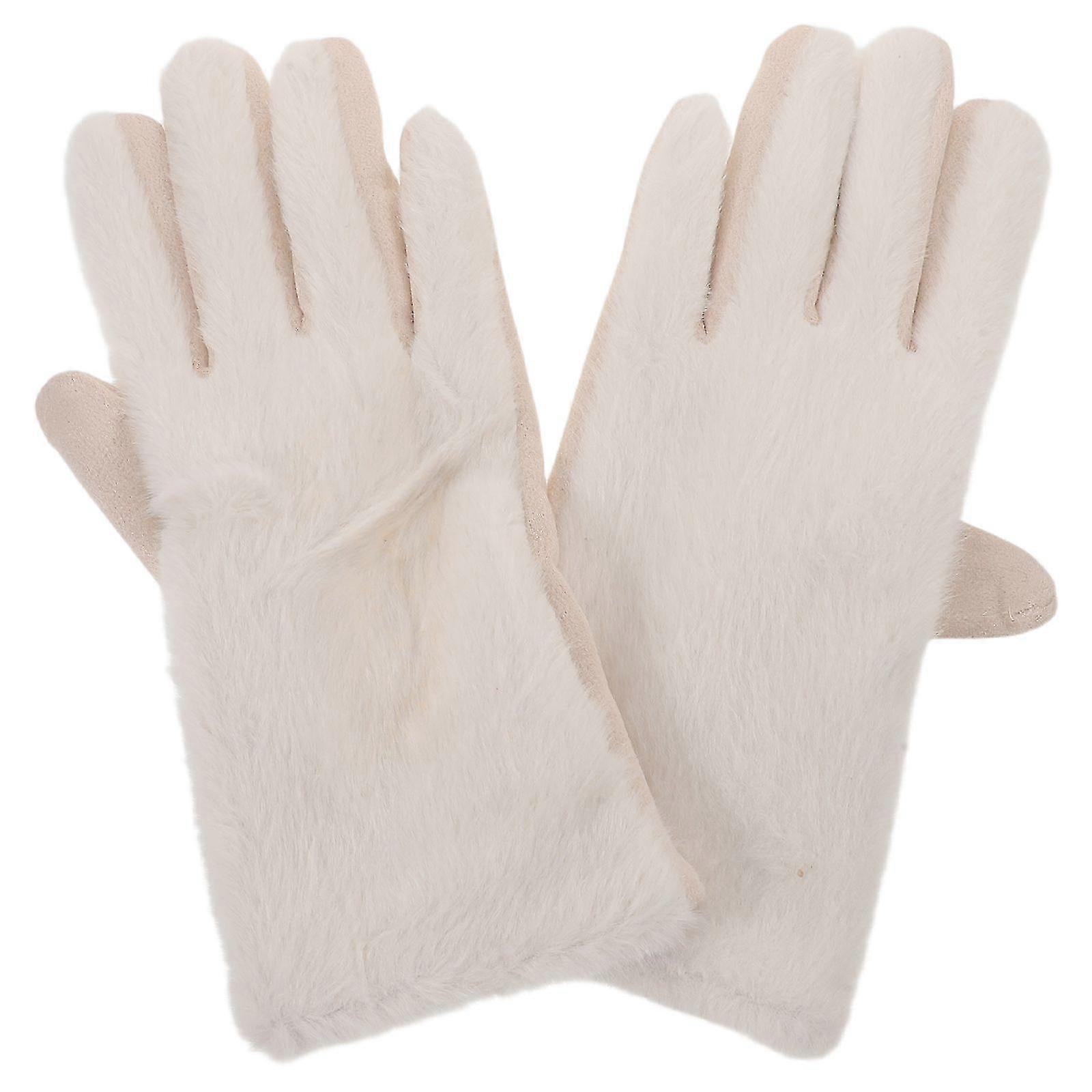Features: Featuring thick warm gloves made from plush material, these fashion white women gloves ensure optimal insulation and keep your hands cozy in cold weather. The unique split-finger design offers flexibility for everyday tasks, while the soft lining adds extra comfort. Features -Color:White -Material:Polyester fiber, suede -Size:24.00X9.00X1.00cm/9.43X3.54X0.39in -Extra warmth: crafted from thick fuzzy material, these warm thermal gloves lock in heat, making them ideal winter gloves for women -Flexible design: the separated finger construction of these gloves women thermal allows for easy movement and handling, perfect for outdoor winter activities and daily errands -Fashionready: featuring a chic white shade, these ladies gloves complement any winter outfit, both style and warmth as part of women's winter accessories -Allday comfort: with a soft polyester interior, these insulated gloves for women ensure comfort and are gentle on the skin, ideal for extended wear during commutes or outdoor use -Universal use: suitable for women who need cozy winter gloves for cold weather, these reusable gloves are perfect for walking, working, or travelling Package list: 1 x pair of warm women's gloves