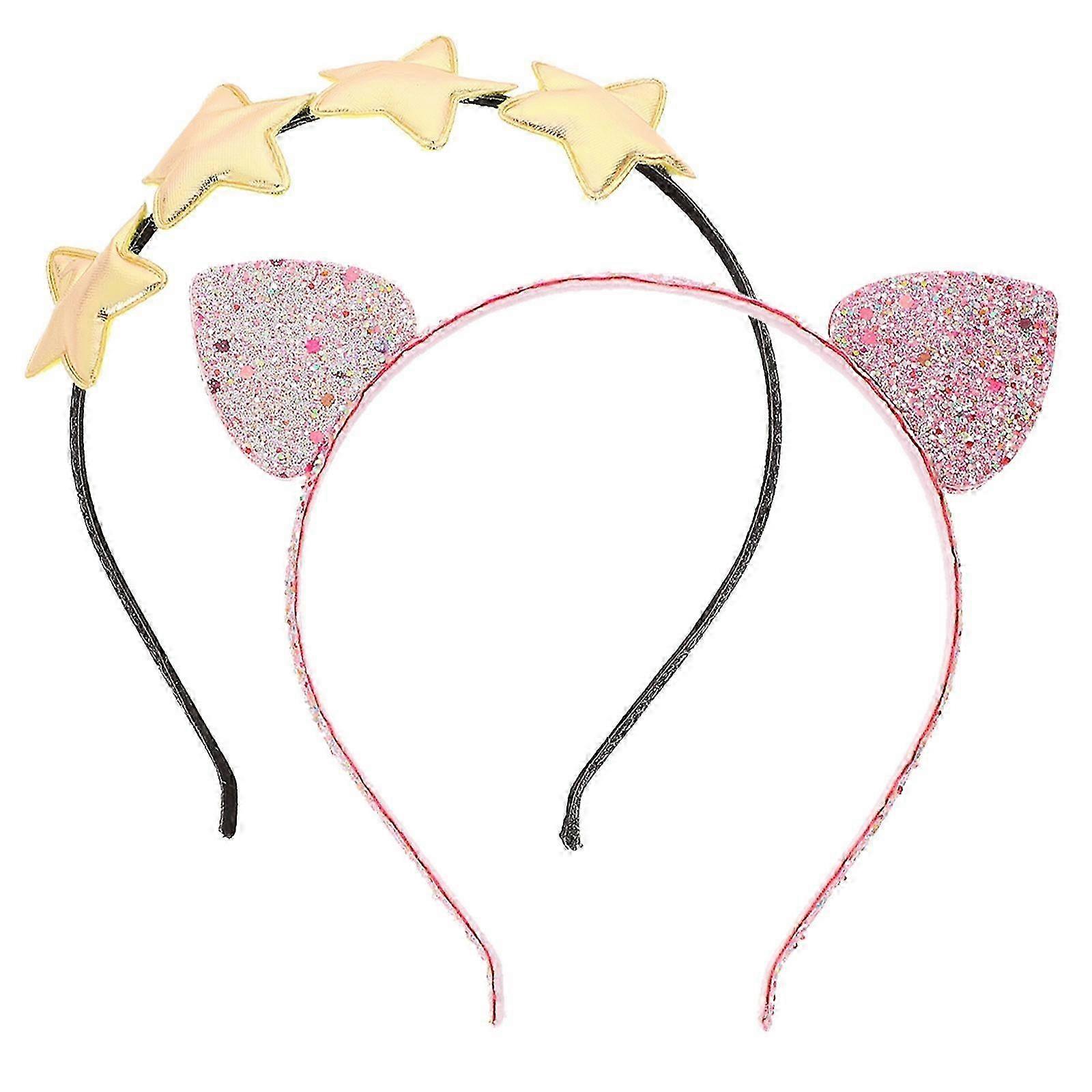 Charming 2pcs Adults Cosplay Party Cat Ear Star Headbands Hair Accessories