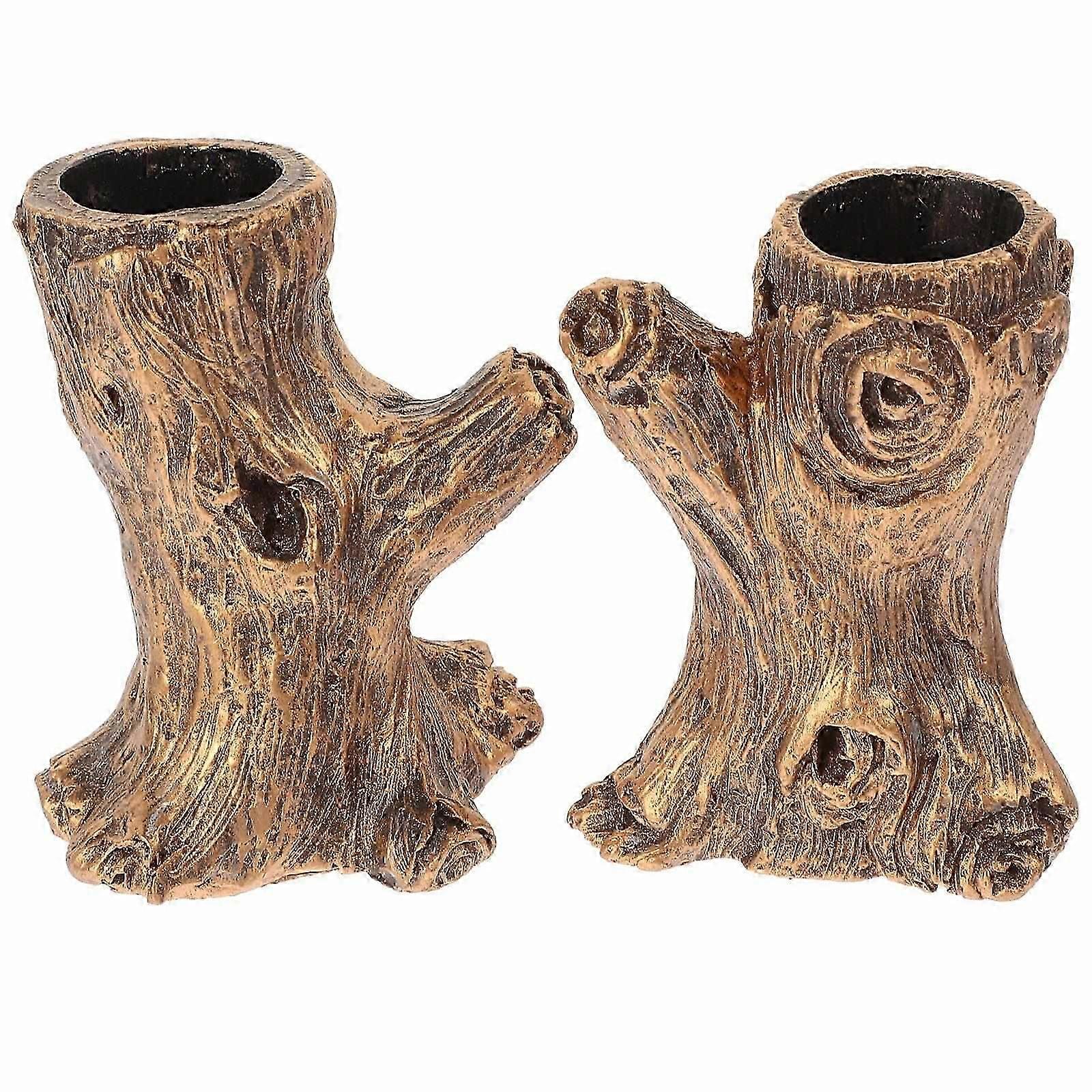 1 Pair Unique Resin Tree Stump Molding Candle Holder Elegant Candle Stick and Stand