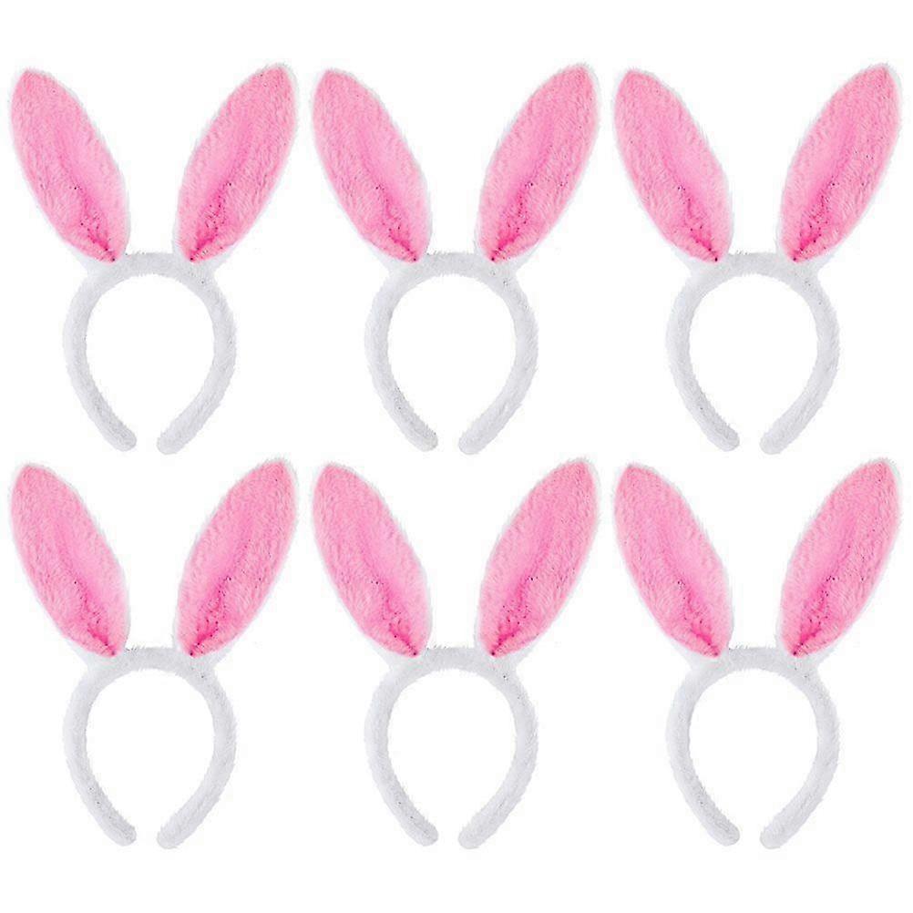 6Pcs White and Pink Rabbit Ear Hair Bands Funny Headdress for Festival Party