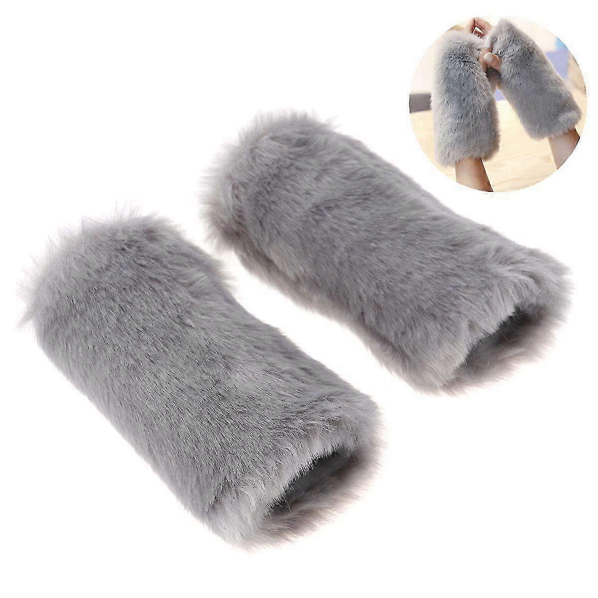1 Pair Soft and Warm Imitation Rabbit Fur Fingerless Gloves for Women Girls (Grey Medium Length Patt