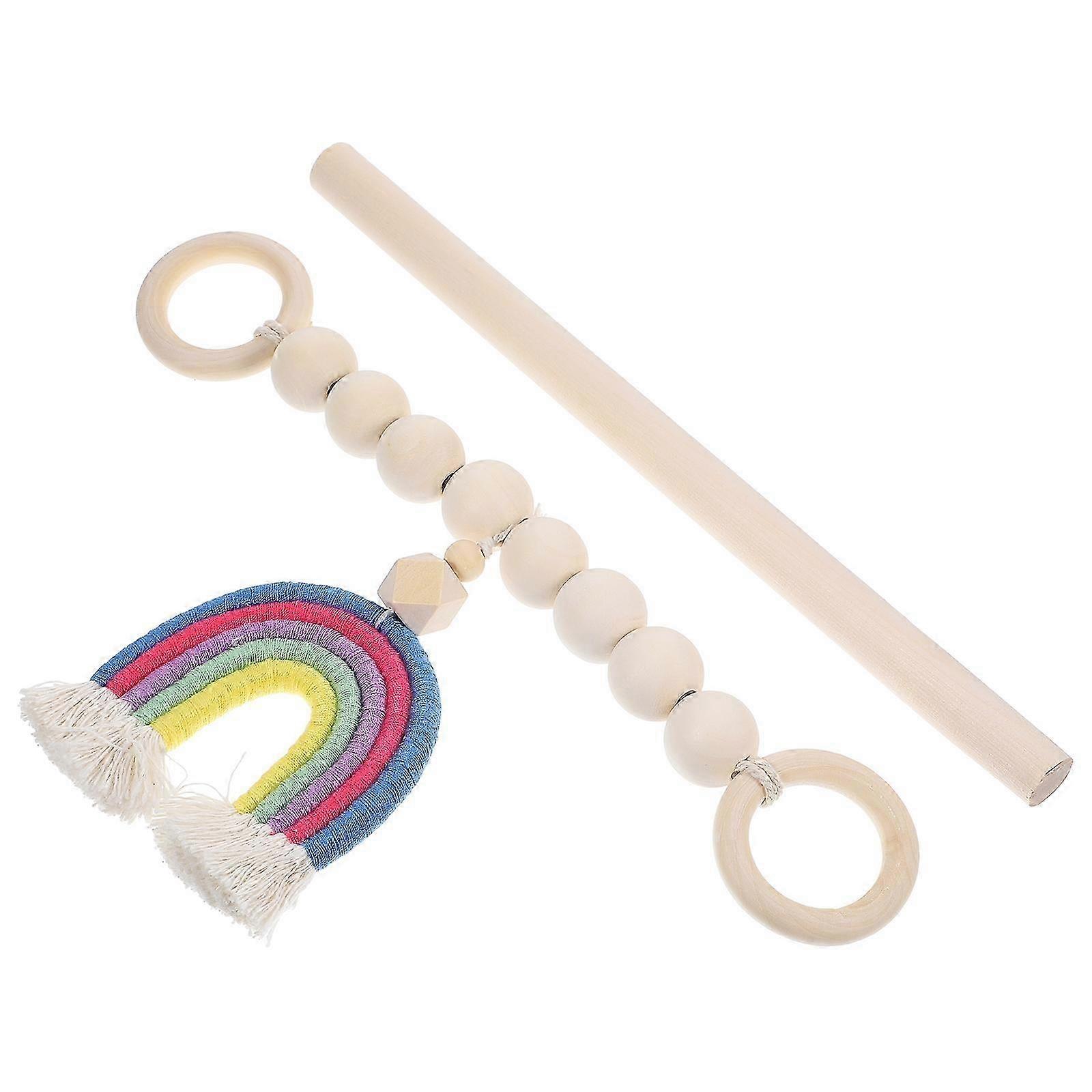 1 Set Elegant Wooden Beads Curtain Tieback with Rainbow Tassel for Rustic Curtain Decor