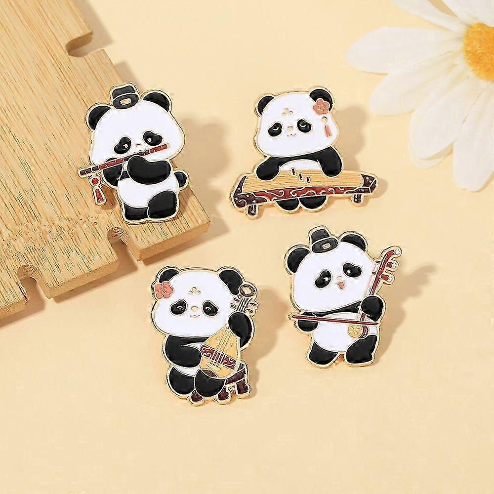 4pcs Charming Panda Enamel Pin Badges Chinese Traditional Style Musical Instrument Metal Brooches fo