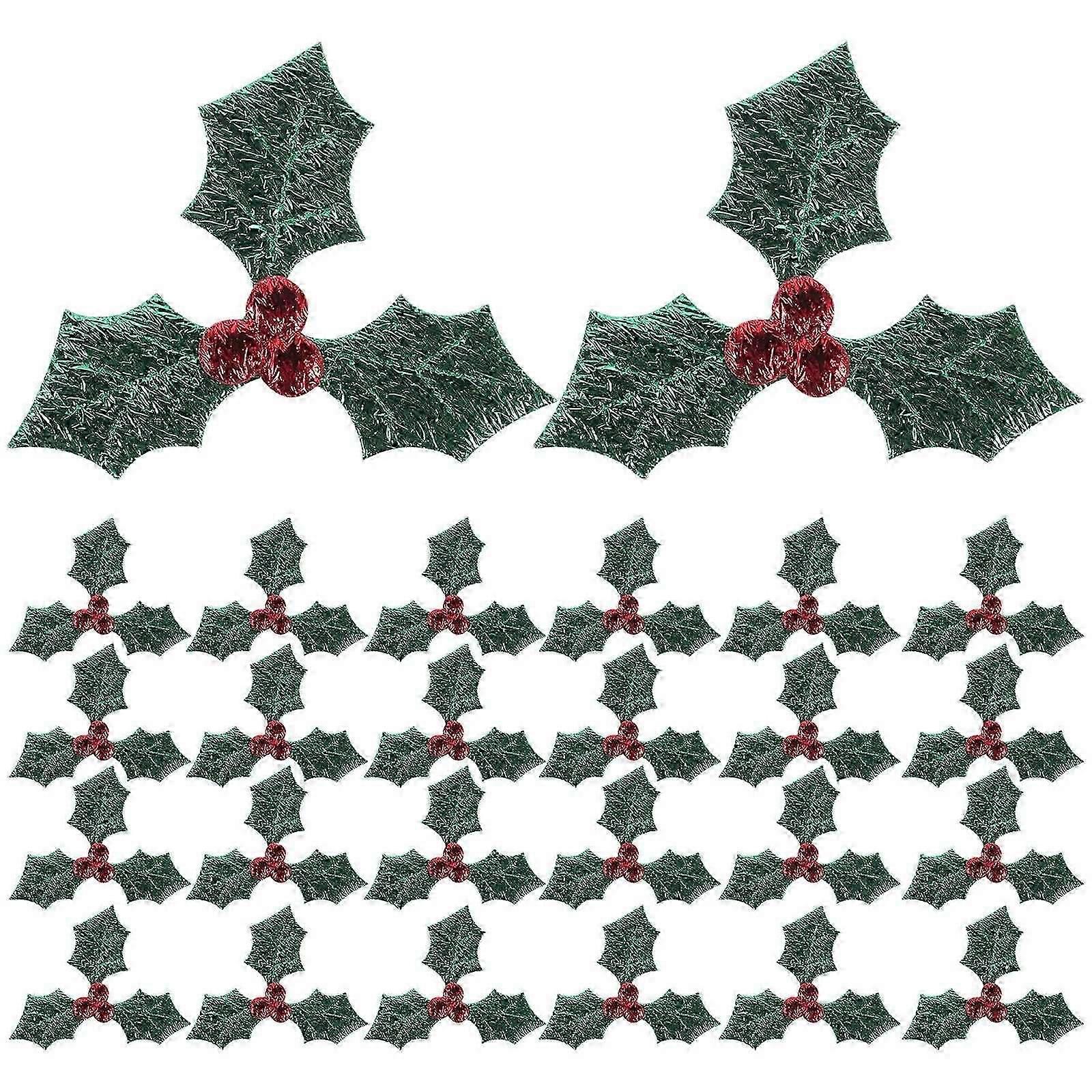 100pcs Creative 5CM Green Christmas Artificial Berry Green Leaf Picks Ideal for DIY Hanging Ornament