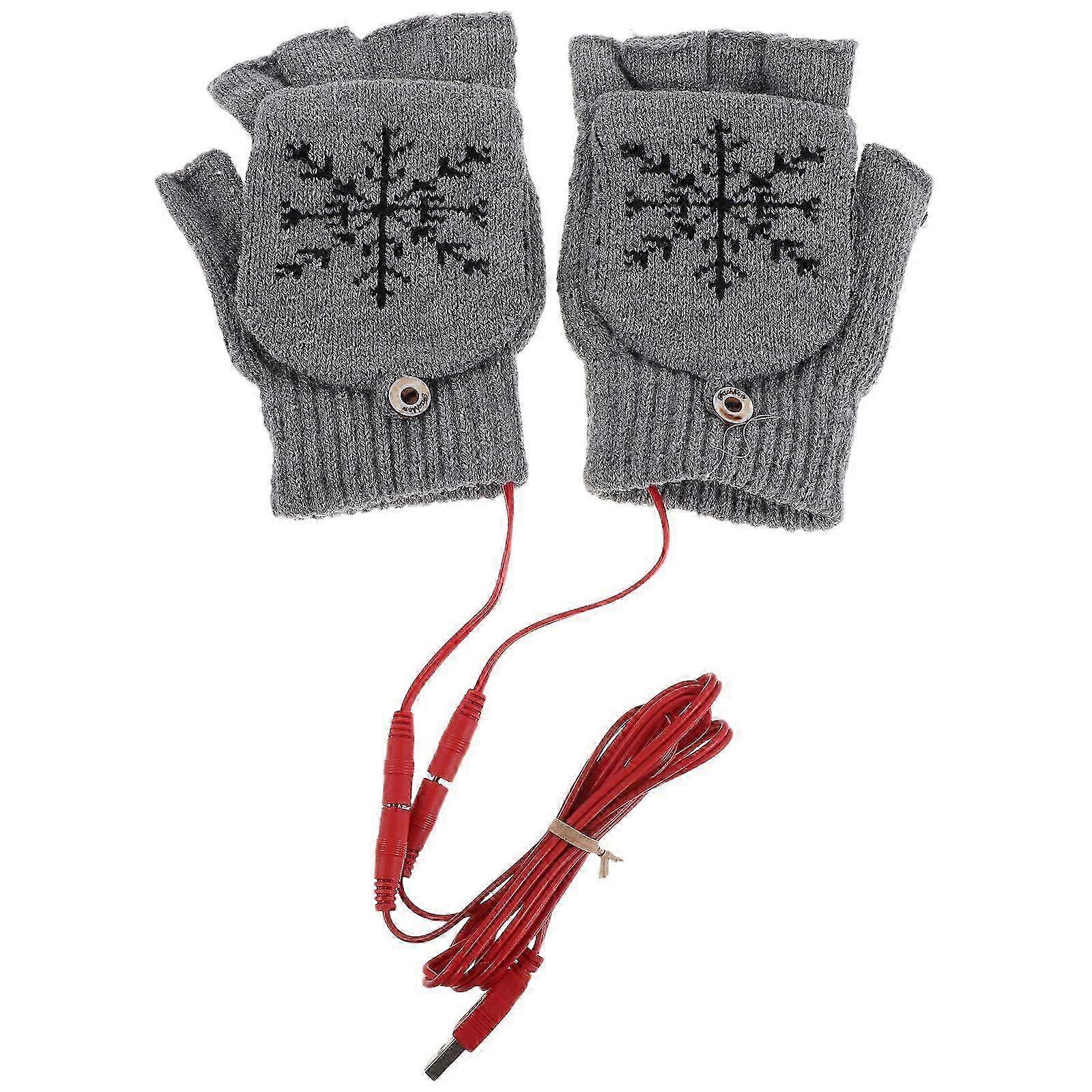 1 Pair Practical USB Heated Fingerless Gloves Rechargeable Winter Warm Flap Mittens in Grey for Wome