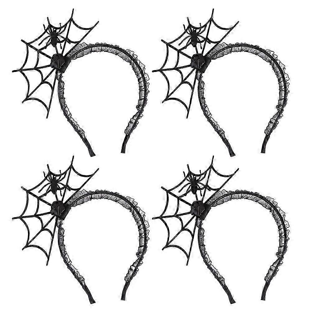 4 Pcs Spooky Halloween Spider Web Headband Lace Hair Loops Clasps Great Role Playing Props for Party