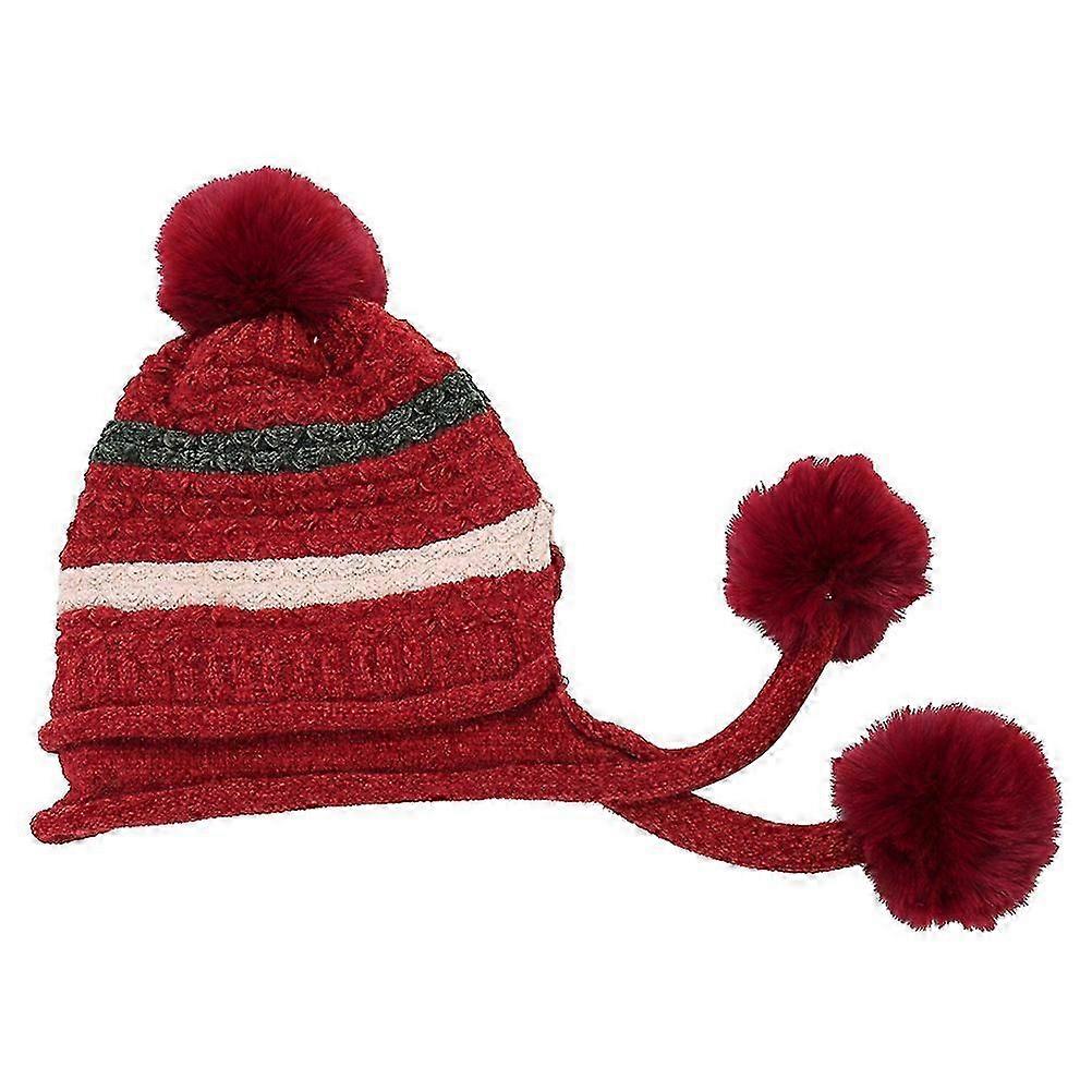 Red Women Wool Knitted Hat Cozy and Stylish Headgear Warm Ski Hat with Hair Ball Decor for Winter