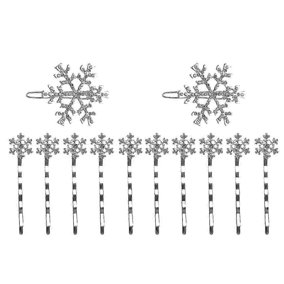 12pcs Charming Snowflake Hair Clips Ideal Alloy Bobby Winter Hair Barrettes for Outdoor Shopping and