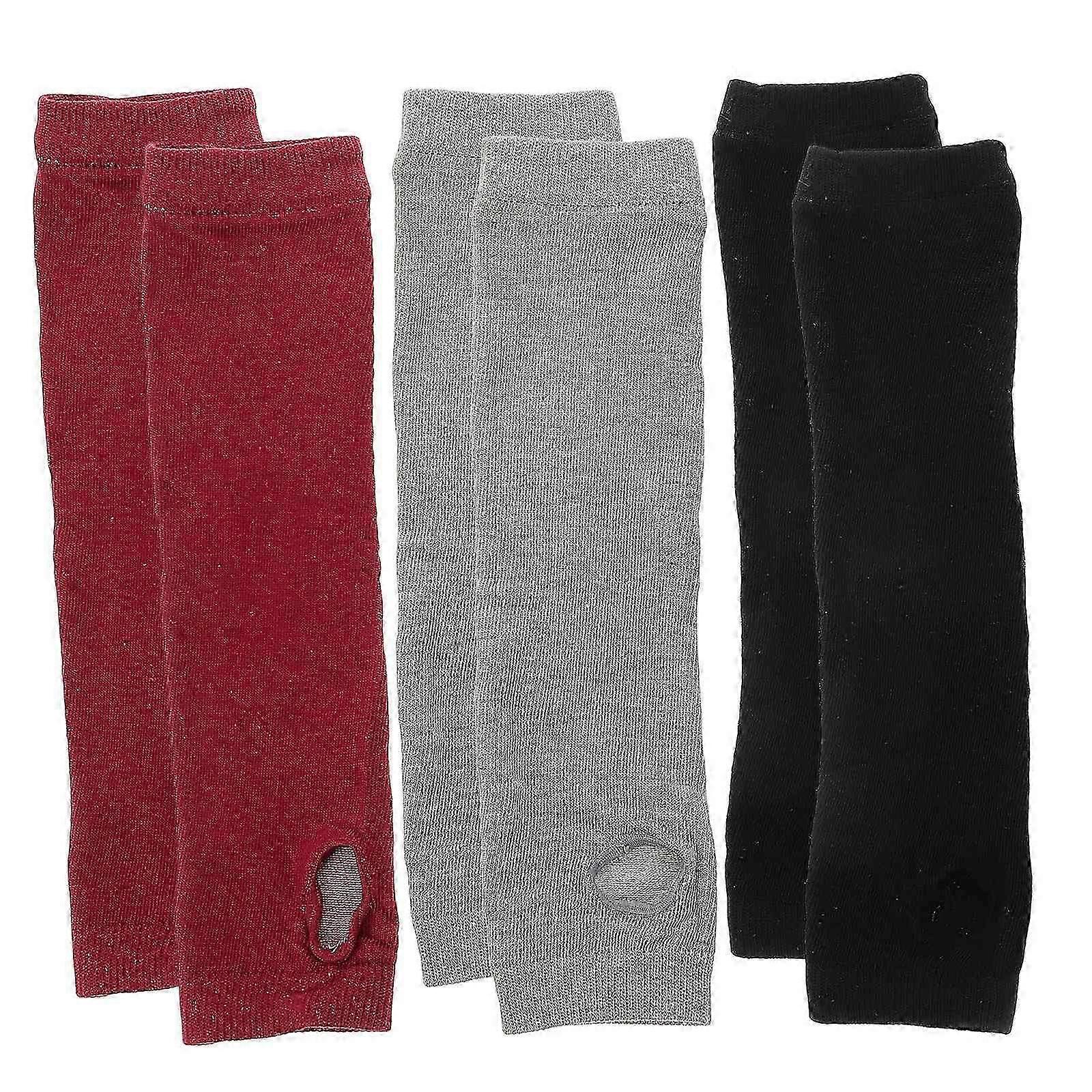 3 Pairs Soft Knitted Winter Arm Warmers Gloves with Thumb Hole Cotton Blend Arm Sleeves for Women in