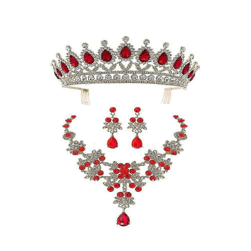 1 Set Red Elegant Distinctive Bride Crown Necklace Earring Set Perfect Jewelry for Wedding Dress Cos