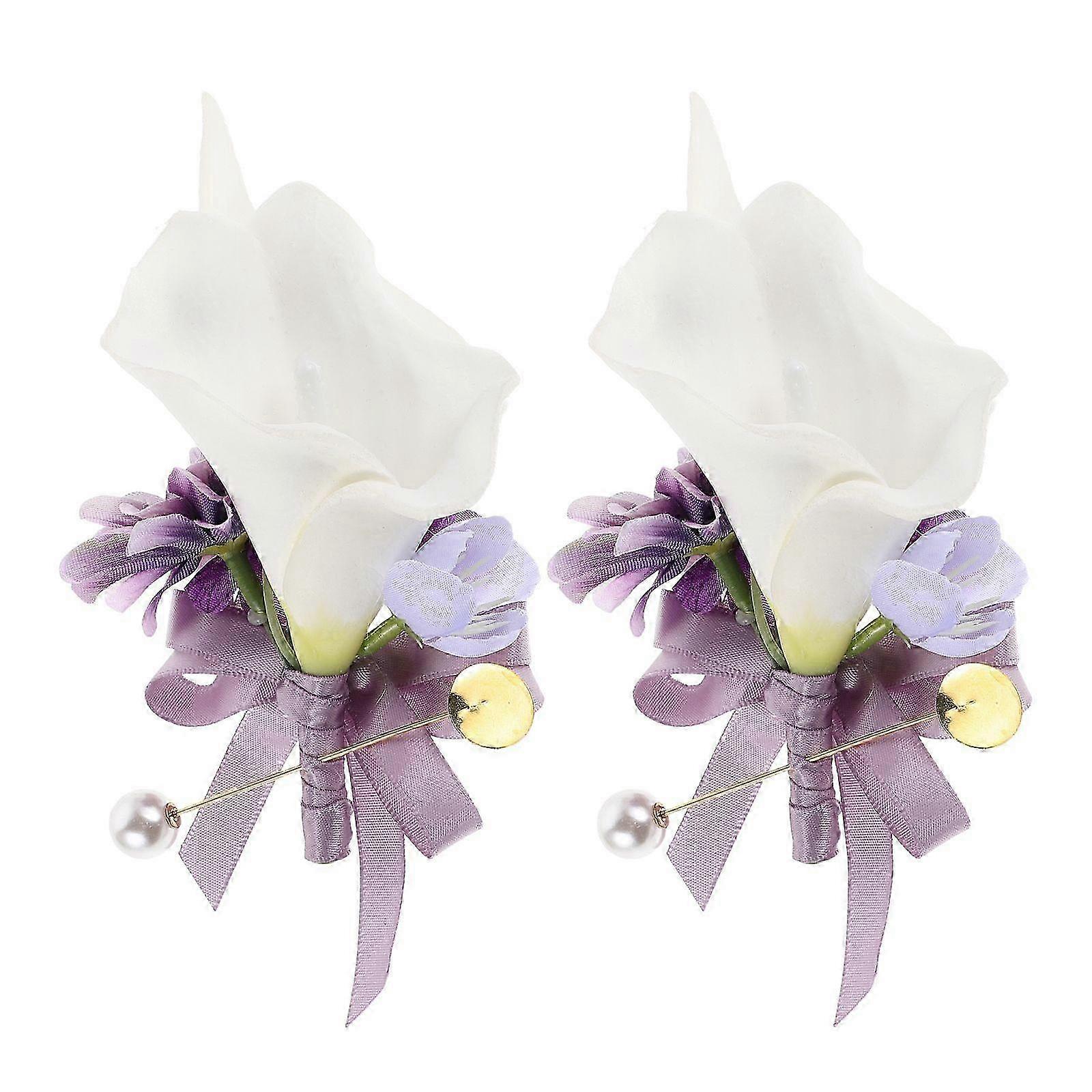 2pcs Vintage Calla Brooch Lily Pin Stylish Fabric Floral Groom Boutonniere for Men Wedding Ceremony