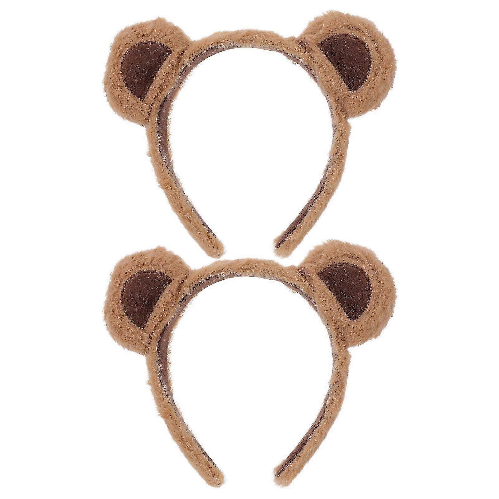 2pcs Cute Furry Bear Headband Kawaii Plush Animal Ear Hair Hoop Perfect for Girls and Women's Spa Ma