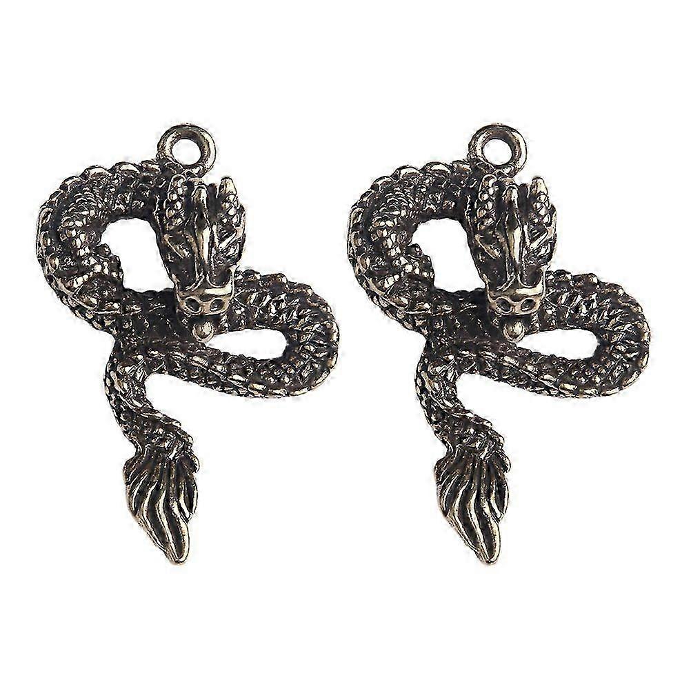 2 Pcs Stylish Chinese Dragon Statue Charm Beads Pendant Bracelet Keychain for Women