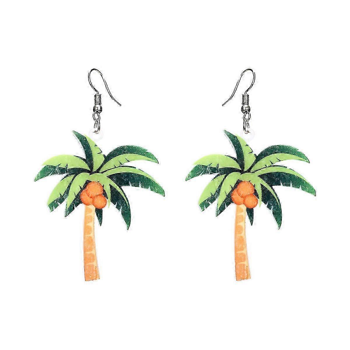 1 Pair of Stunning Green (Coconut Tree) Acrylic Ear Drop Women Earrings with Delicate and Creative D
