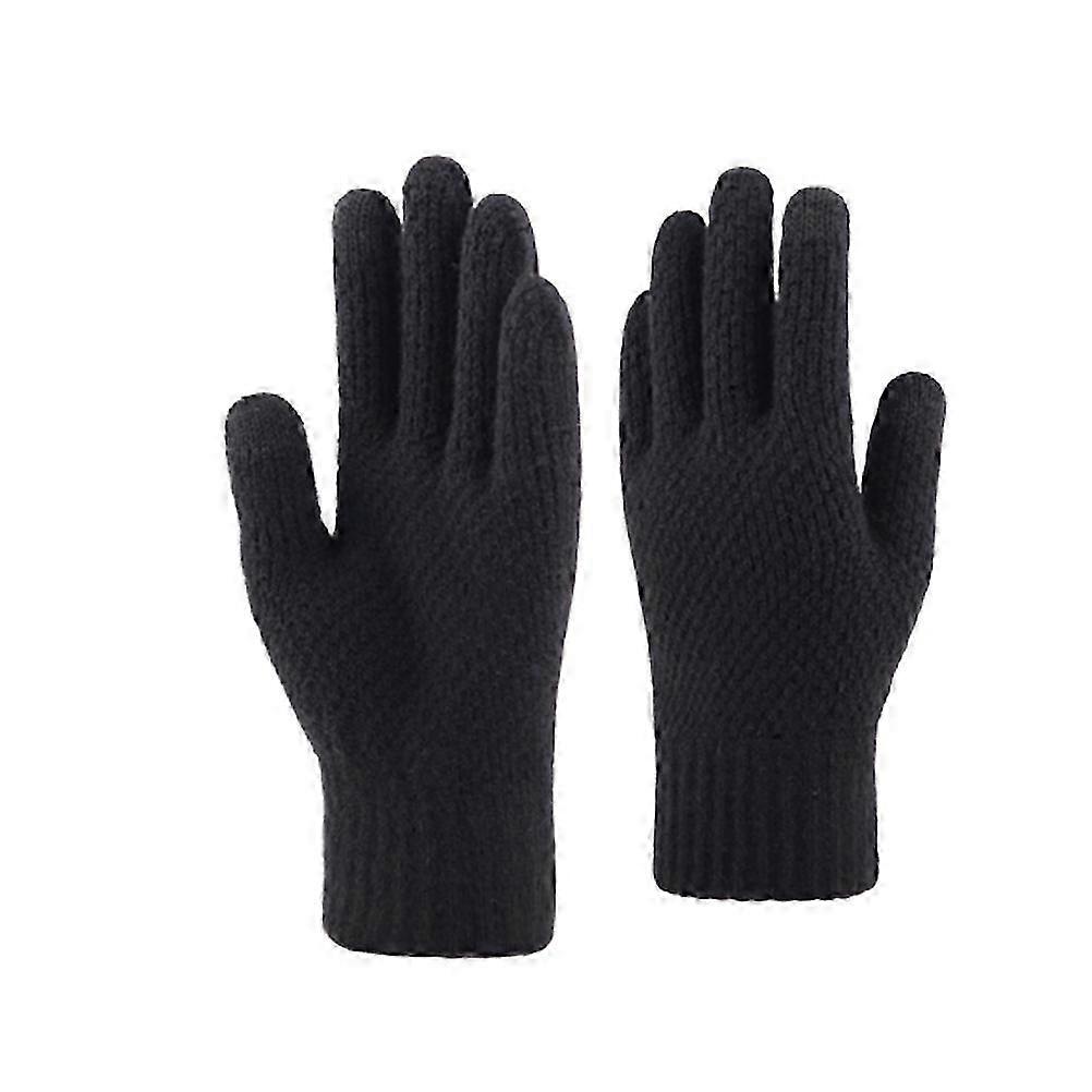1 Pair Black Thicken Plush Knitted Winter Touch Screen Gloves for Men Fingerless Mittens