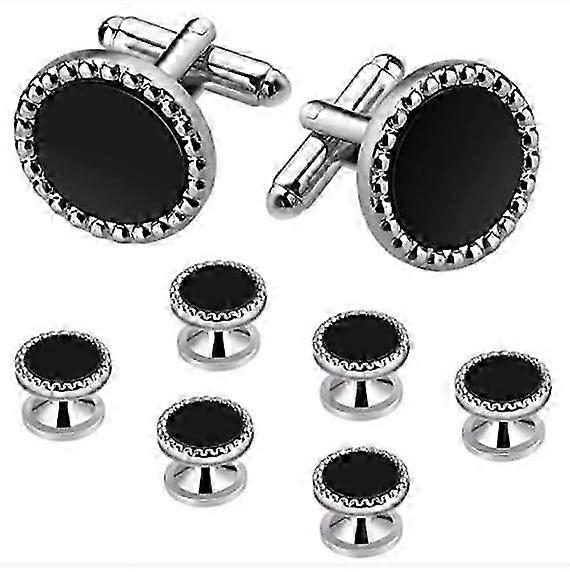 8pcs Black Round Mens Acrylic Cufflinks Stylish Shirt Studs Ideal Tuxedo Formal Suit Jewelry Decorat