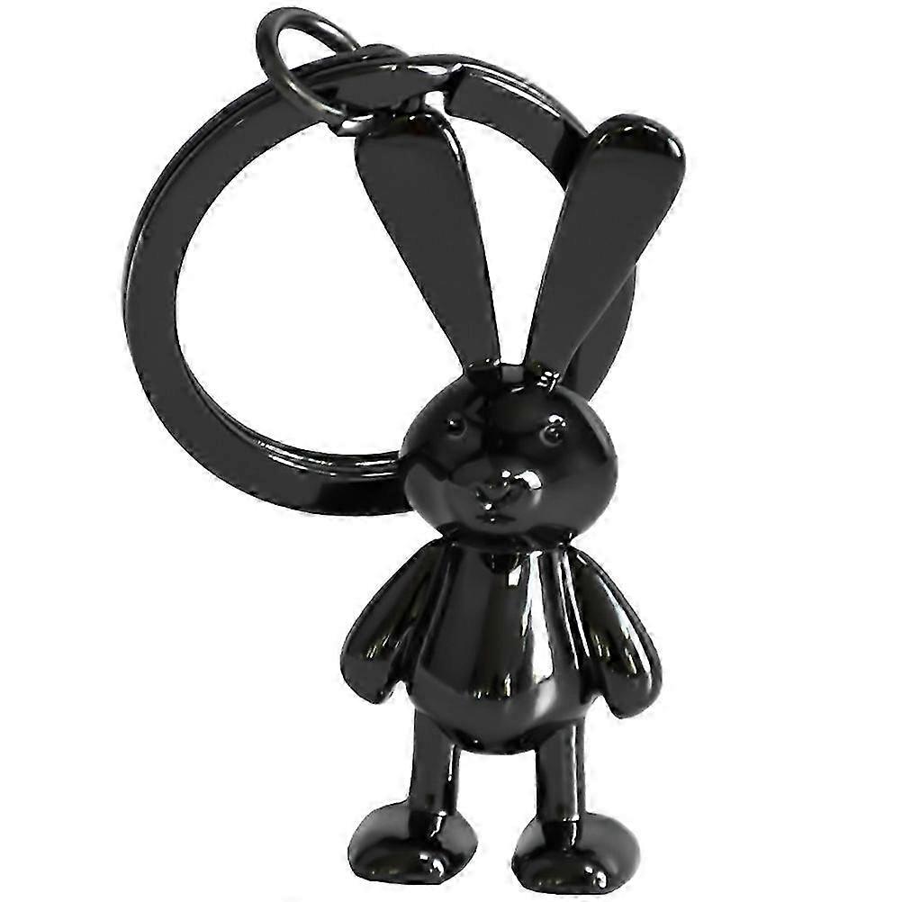 Cute Bunny Keychain Decorative Metal Rabbit Key Ring Pendant in Black