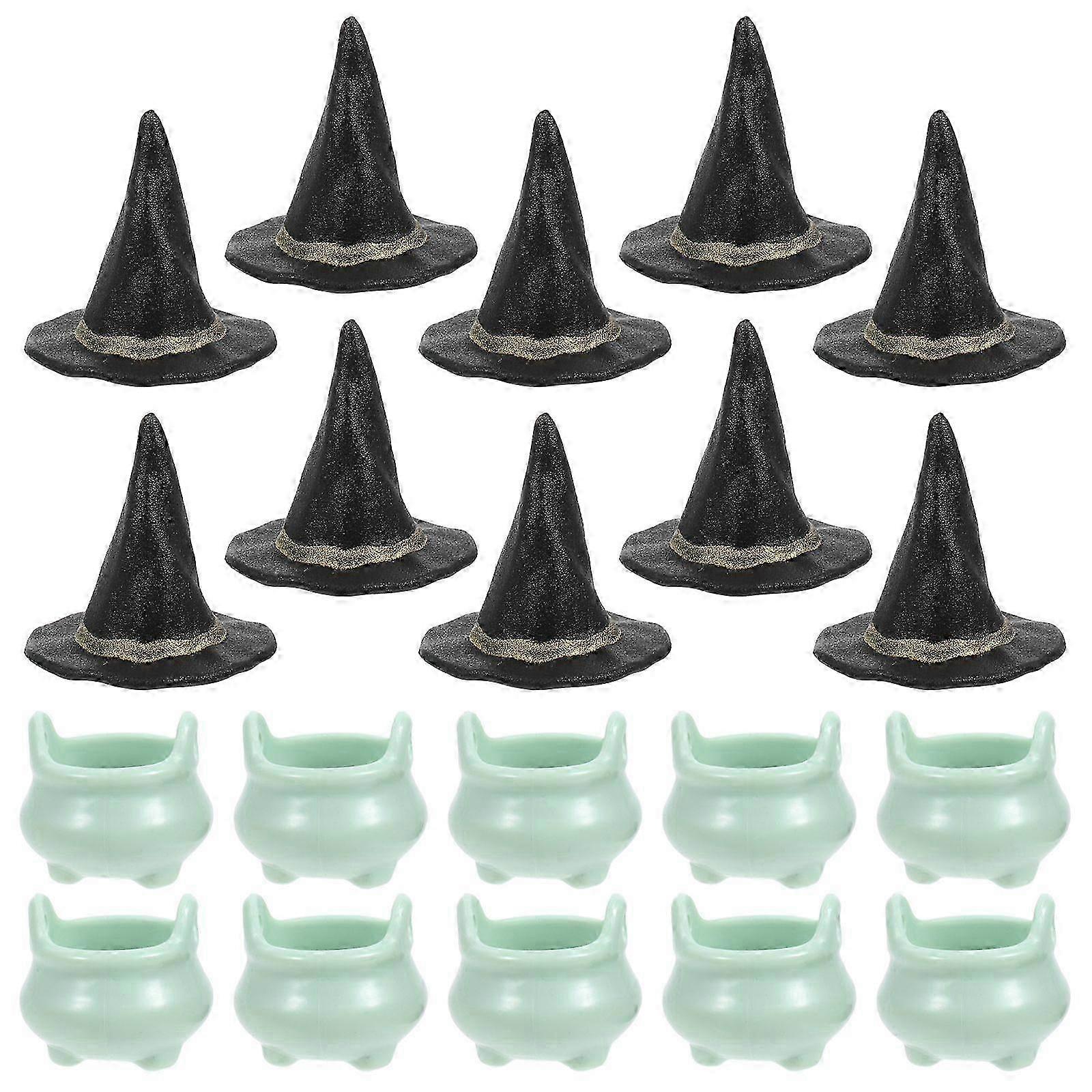 1 Set of Charming Halloween Miniature Cauldron And Witch Hat Multi use Ornaments