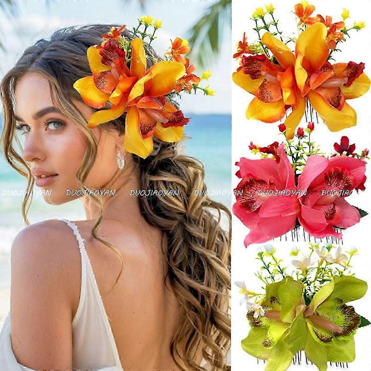 3pcs Artificial Orchid Metal Slides Floral Hair Combs Stunning Bridal Headpieces Ideal for Wedding S