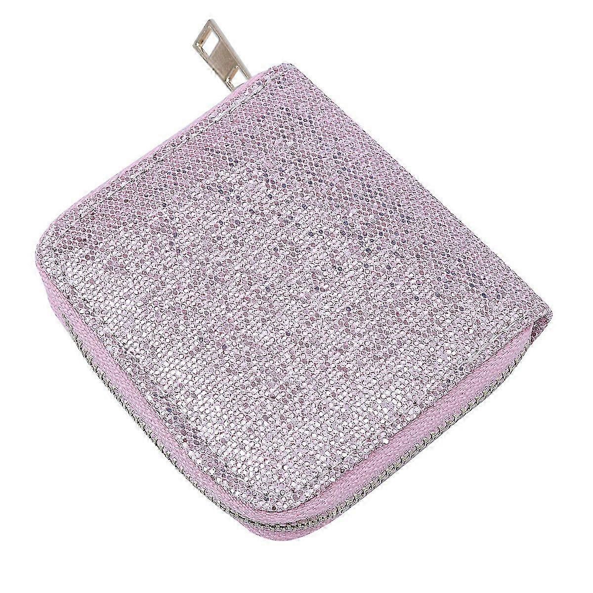 Pink Glittery Pattern Coin Purse Zippered Storage Bag for Girls and Women